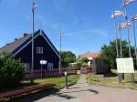 Ist man in der Stadt zurück, bietet es sich an, sich die attraktive Talstation der Seilbahn anzusehen. Sie sieht sehr neu aus. Eine Fahrt in der Kabine kostet hin und zurück 5,-€. An dieser Station beginnt die Fußgängerzone, die wieder zu den Seen führt, wo unser Auto stand. Neben sehr vielen nagelneuen Sanatorien sind auch die alten Kleinode erhalten geblieben, die schön mit Schnitzereien geschmückten Holzhäuser. Sie erinnern an die alten Glanzzeiten Druskininkais, als Anfang des 19. Jahrhunderts selbst Zar Nikolaus I. hier kurte und Erholung suchte.