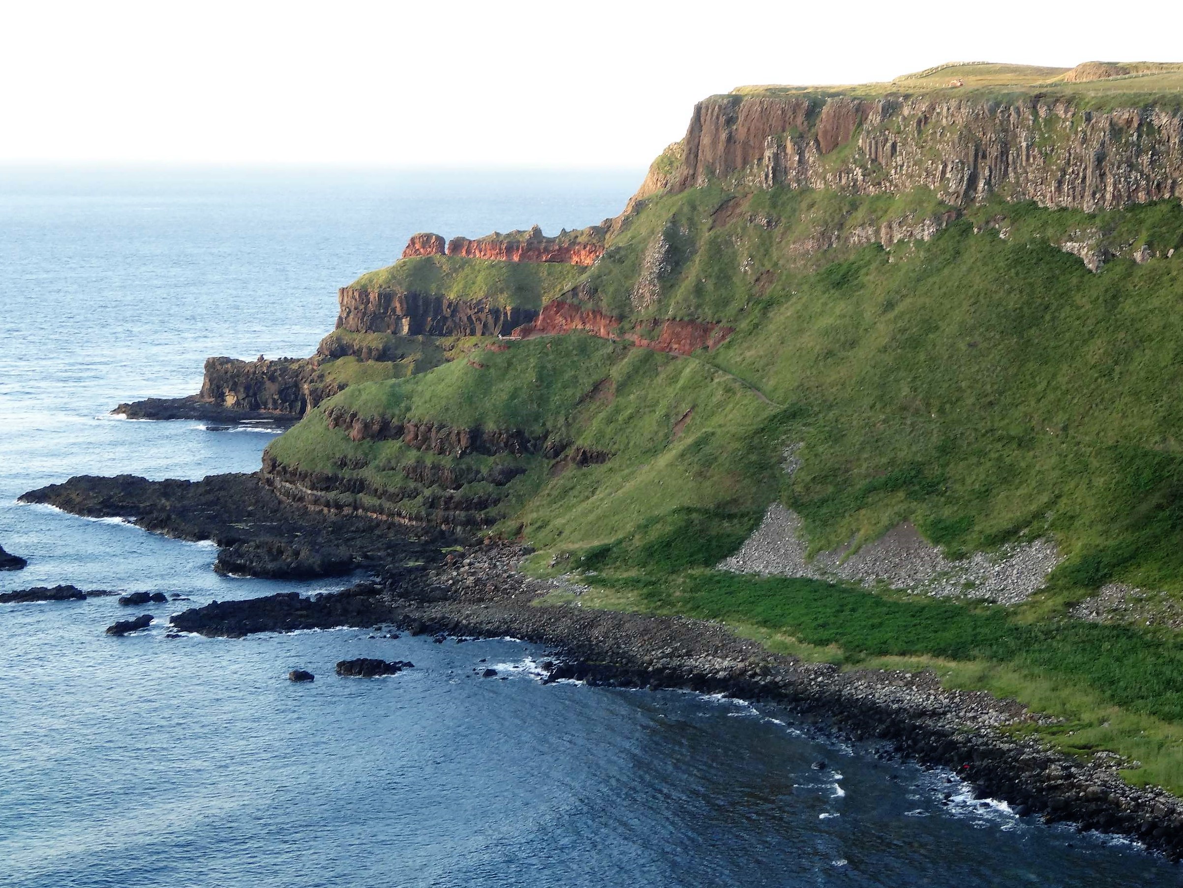 Über enge und engste Straßen, wie bis dort hin auch, erreicht man Carne Beach, einen langen, herrlich sauberen Sandstrand. Das Wasser ist klar und es gibt keine Algen. Das Wasser hatte sich weit zurückgezogen. Hinter dem Strand, an den Abbruchkanten, sind sehr schön die Gesteinsschichten zu erkennen. Die unterste Schicht ist gefalteter Schiefer in sehr schönen Mustern, darüber liegen die Sandsteinschichten in verschiedenen Dicken und Schattierungen. Darüber liegt der Boden mit dem Bewuchs.