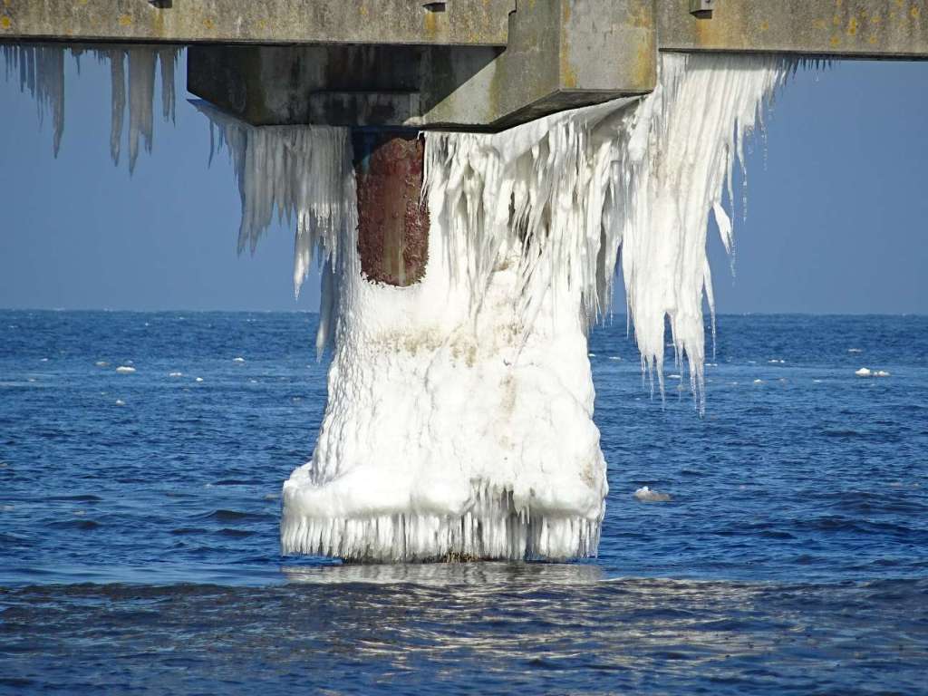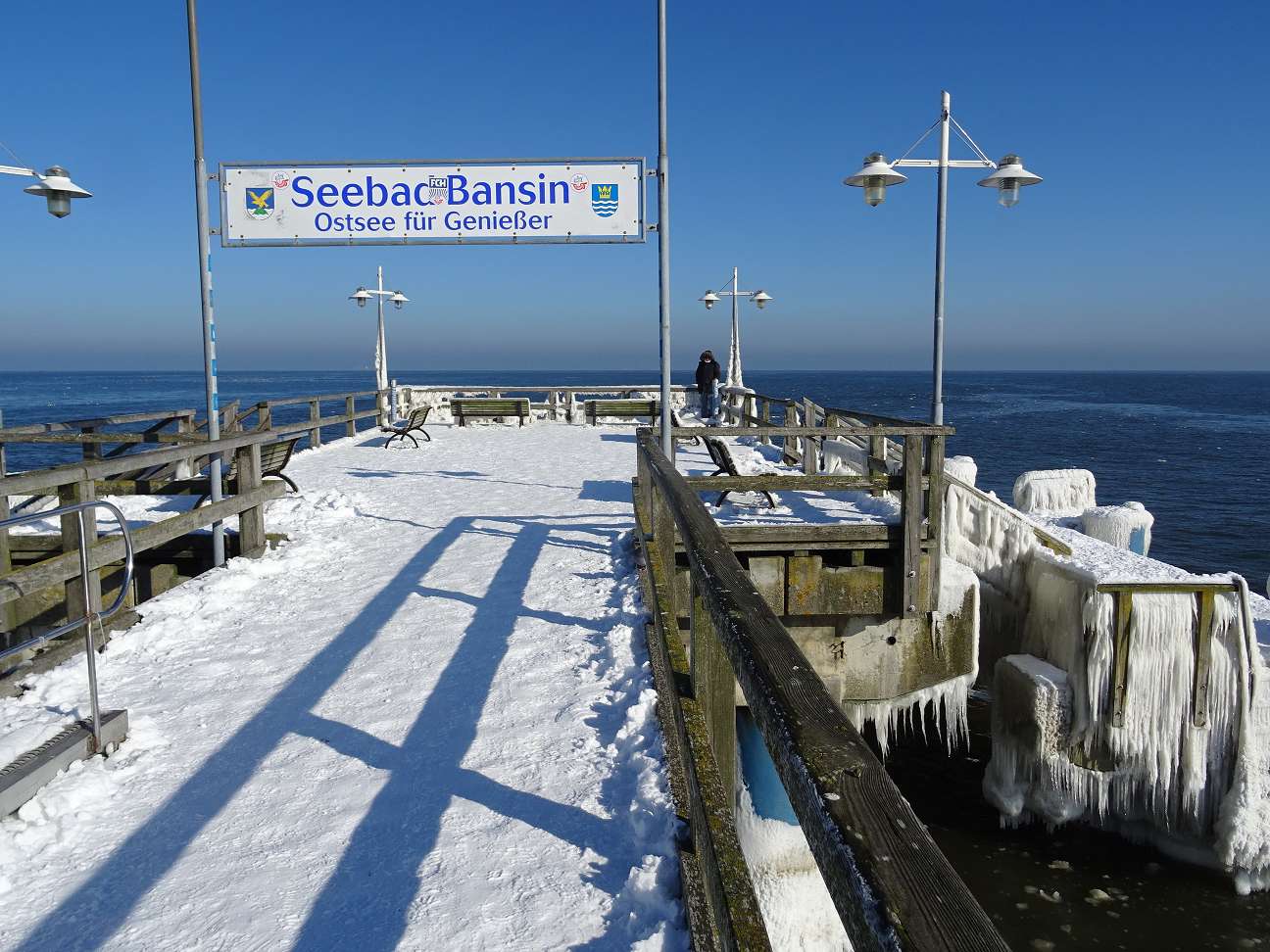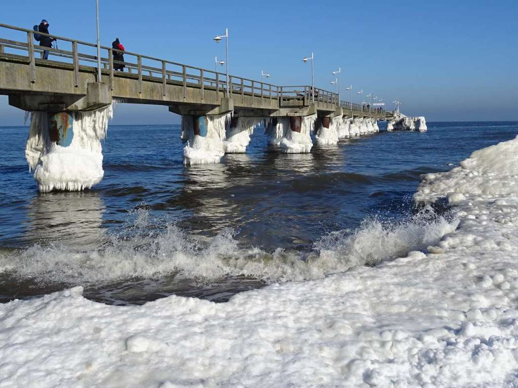Heute, am 14. Februar 2021, seit mehr als zwei Wochen friert und schneit es, setzten wir uns ins Auto und fuhren nach Bansin auf Usedom. Wir hofften, den Ostseestrand zugefroren vorzufinden, aber was uns da erwartete, sprengte unsere Vorstellungskraft. Ein sibirisches Wintermärchen verzückte alle Strandbesucher. Frost, Schnee und Wasser schufen eine Dünenlandschaft aus Eis. In der Ostsee schwimmen kleine „Eisberge“ und die Brandung zauberte Eiszapfenskulpturen an der Konstruktion der Seebrücke. Über allem legte sich ein im Winter des Nordostens äußerst seltener azurblauer, wolkenloser Himmel. Das war so unbeschreiblich schön, dass wir uns kaum davon trennen konnten.