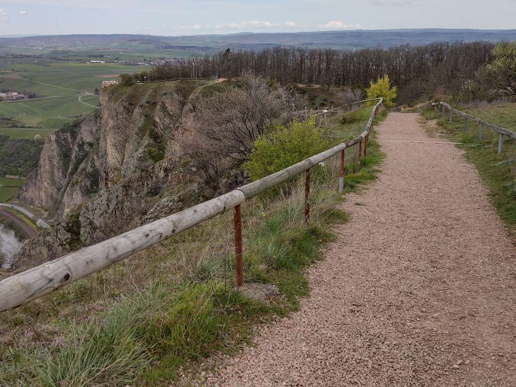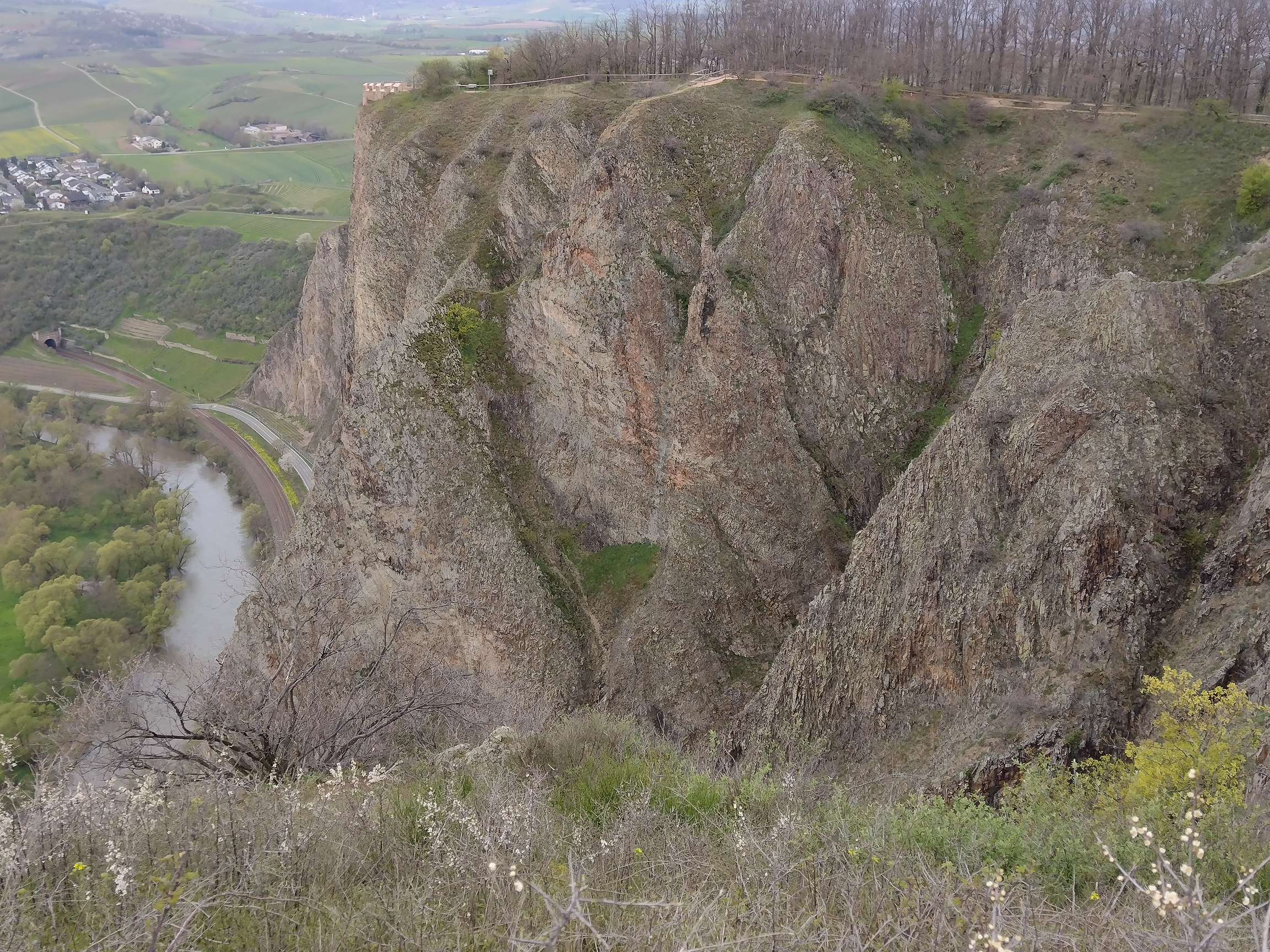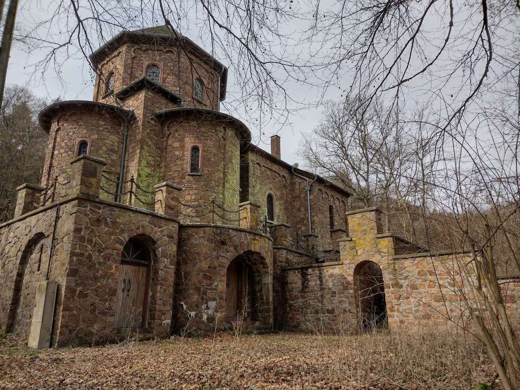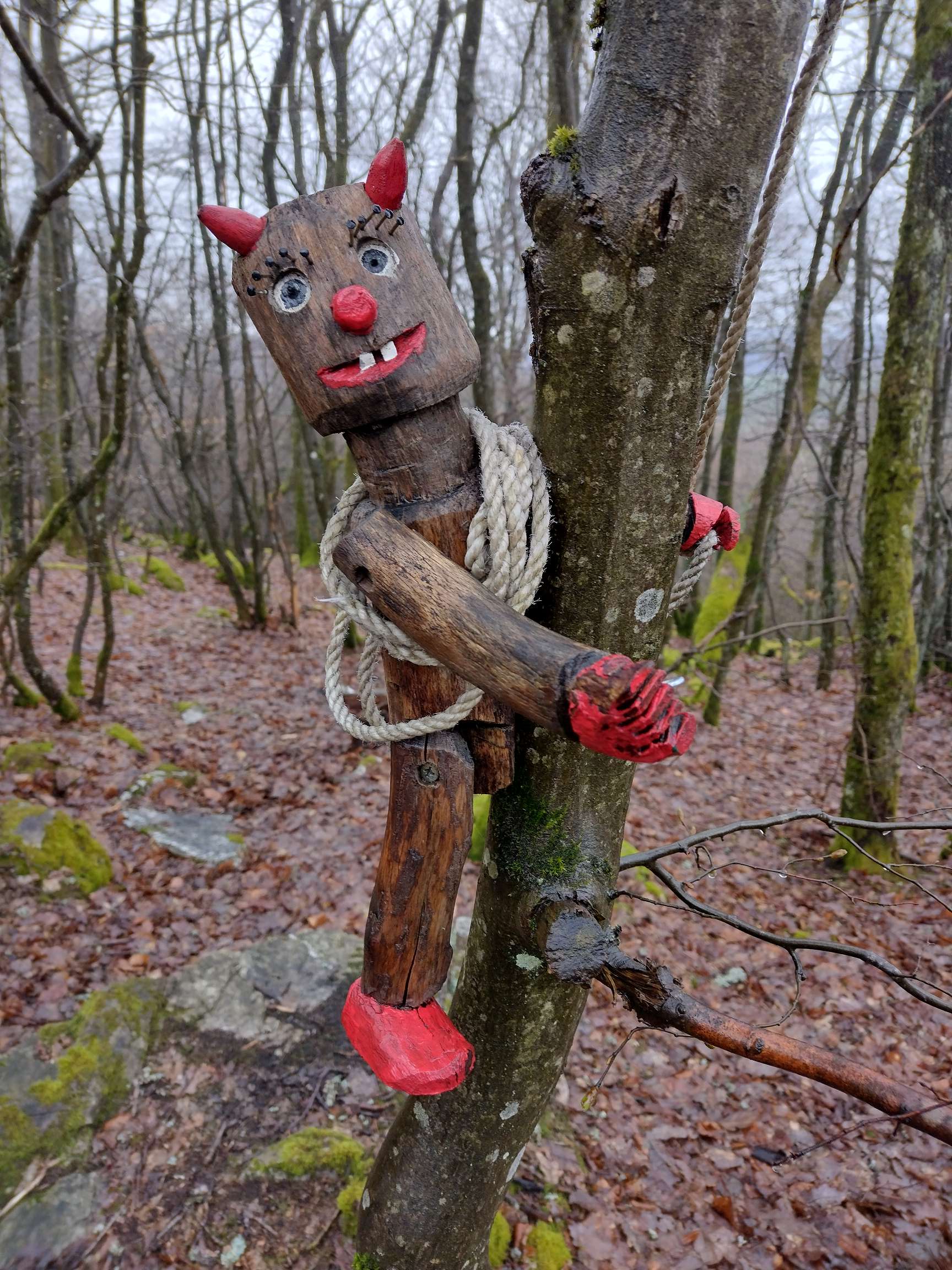 Nun ist es etwas schwierig den Weg zu finden, aber mit ein bisschen Geduld klappt das. Von nun ab geht es genauso steil, wie es hoch ging, wieder hinunter. Man muss sich seinen Weg über Stock und Stein bahnen und auch ein wenig klettern. Bald kommt man zu einer kleinen Sandstein-Brücke. Die lässt man links liegen und klettert, im wahrsten Sinne des Wortes weiter bergab. Nun führt der Weg immer durch den Schindergraben. Hier entsorgten 1546 die Abdecker, altdeutsch: Schinder, totes und todkrankes Vieh, um keine Seuchen aufkommen zu lassen. Ich will mir nicht vorstellen, wie das hier gestunken haben muss.