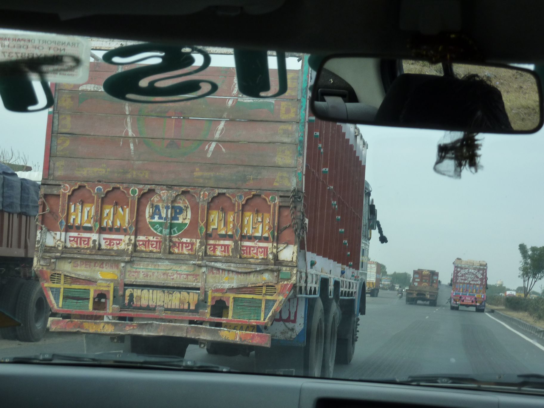 In Indien, was wir so gesehen haben, muss man ganz genau wissen, wo sein Auto anfängt und wo es aufhört. Jederzeit ist Millimeterarbeit gefragt und man muss Argusaugen haben, um wirklich nichts und niemanden zu übersehen. Mit dem PKW hat man sowieso das Nachsehen, denn Fahrräder, Mopeds, Karren und Tuk-tuks quetschen sich immer und überall dazwischen. Da dauert es eine Weile, bis man mit seinem großen PKW durchkommt. Die Vorfahrt der Linienbusse kann nur begrenzt durchgesetzt werden. Die großen Reisebusse, die man auch hin und wieder sieht, haben es am allerschwersten. Als Europäer schmeißt man entweder nach einem halben Kilometer das Handtuch oder spätestens nach drei Tagen.