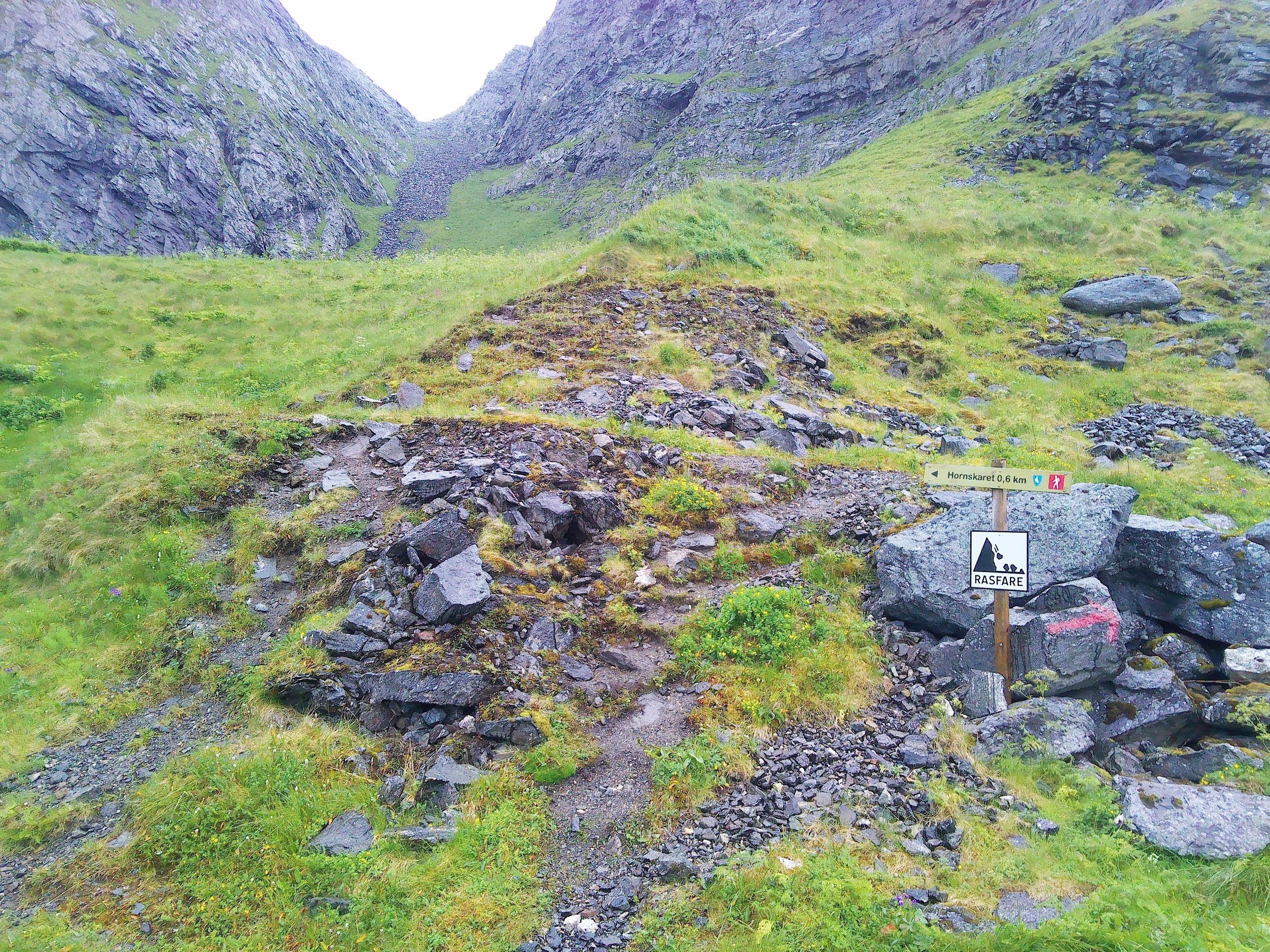Wandern in Norwegen ist ein weiteres Thema, mit dem man sich auseinandersetzen sollte, wenn man gerne wandert. Es unterscheidet sich von allem, was wir bisher erwandert haben. In Norwegen muss man auf 98% der Strecken sehr gut zu Fuß und fit sein. Es gibt keinen Wanderweg, der nicht lange und steil nach oben führt. Ausgebaute Wanderwege gibt es so gut wie gar nicht, es sind fast alles Trampelpfade über Stock und Stein. Manchmal sind nicht einmal Trampelpfade zu entdecken. Wenn man Glück hat, weist ein Schild oder ein Steinmännchen noch den Weg.