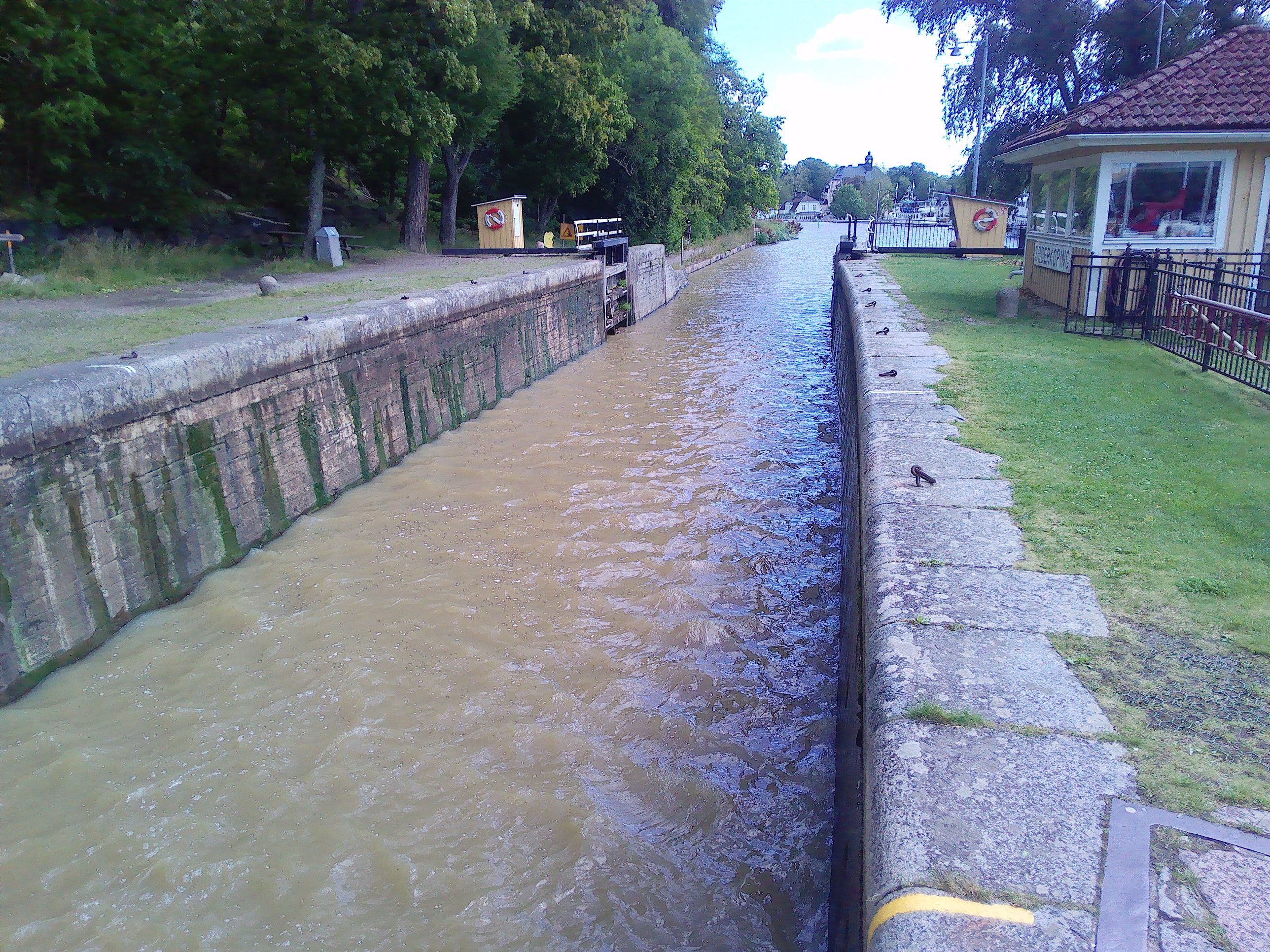 Nach dem Besuch von Norrköping ging es nur einige Kilometer weiter Richtung Süden, bis zur kleinen Stadt Söderköping. Die erste Nacht verbrachten wir auf dem Wanderparkplatz Ramunderberget. Das Felsgebiet liegt am gegenüberliegenden Ufer des Göta-Kanals, der durch Söderköping führt. Der Kanal ist ca. zweihundert Jahre alt, 190 Kilometer lang und 58 Schleusen sorgen für den Ausgleich des Höhenniveaus.