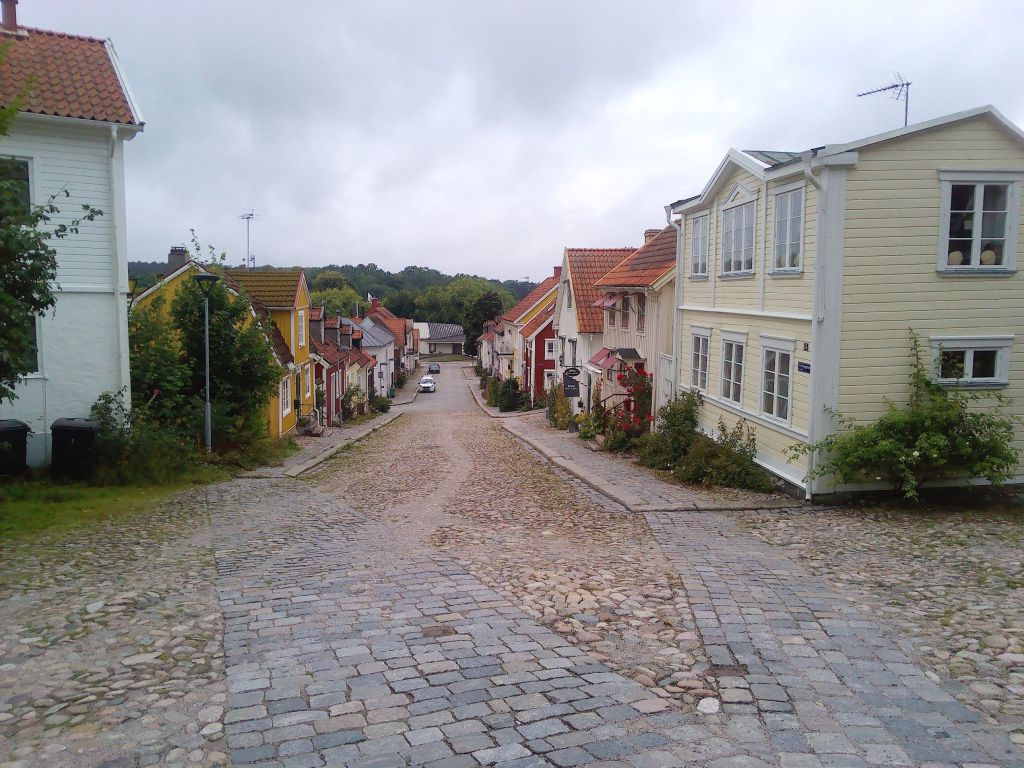 Durch eine Gasse kamen wir in den ältesten Bereich von Strängnes. Die alten Holzhäuser versetzen die Besucher in eine längst vergangene Zeit zurück. Die Gassen steigen leicht an und irgendwann kommt man zur Windmühle auf dem Hügel über der Stadt, 1855 als Holländer-Windmühle gebaut.