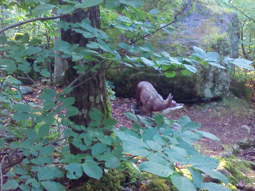 Überall verstecken sich kleine und große, ganz verschiedene Gestalten. Es macht Spaß sie zu entdecken, aber Ihr wisst ja, nicht schlecht über die Trolle reden. Die können sich ganz fürchterlich dafür rächen. Jedenfalls sind dies die längsten siebenhundert Meter, die wir je gelaufen sind. Es ist einfach zu schön, sich die einzelnen Gestalten anzusehen. Da hat sich jemand sehr viel Arbeit und Mühe gemacht. Wer möchte, und wem diese Wanderung gefallen hat, kann elektronisch eine Spende hinterlassen.
