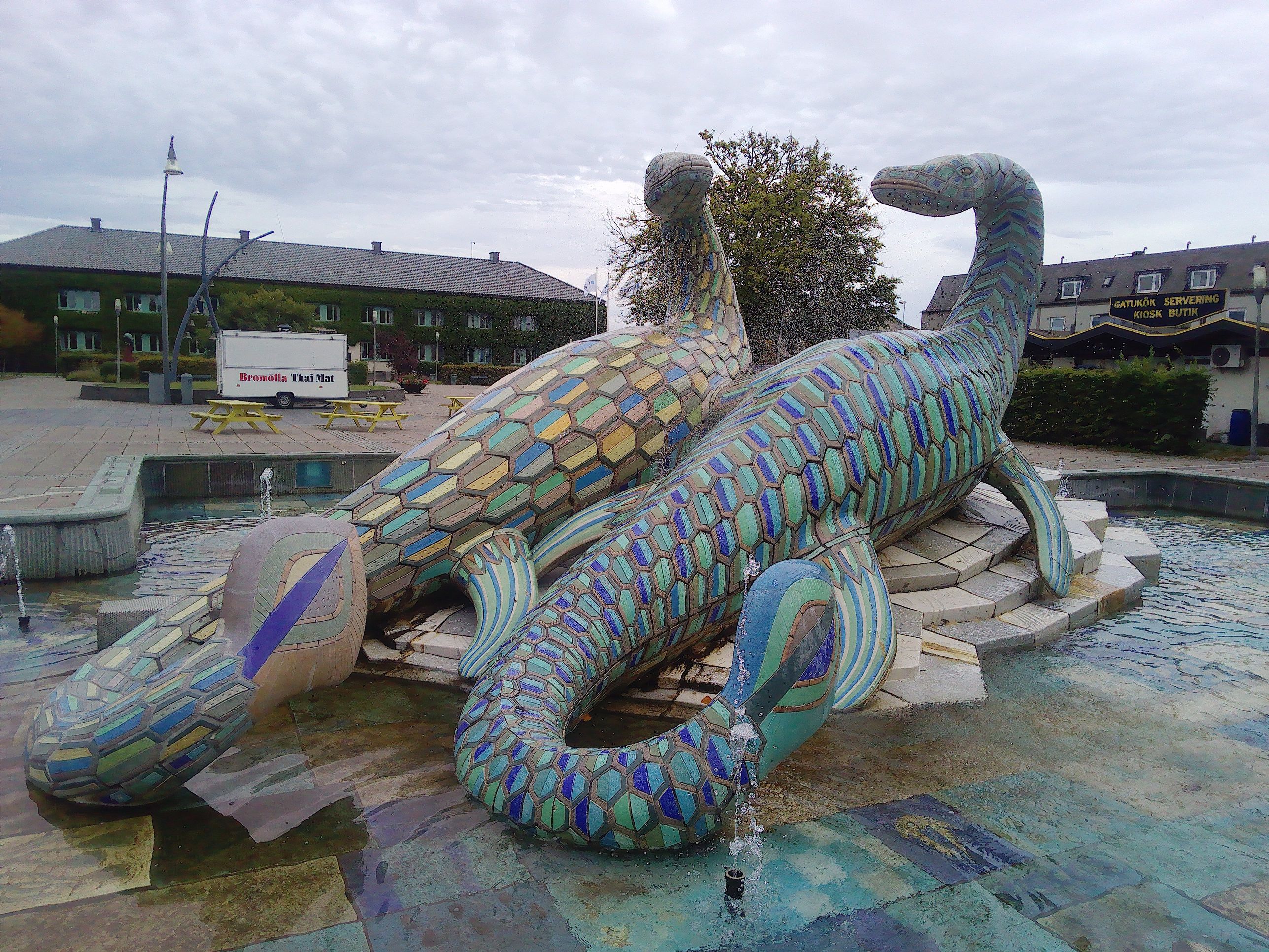 Warum diese Saurier? Vor 60 Millionen Jahren lag dieses Gebiet unter Wasser und die Schwanenhalssaurier, später Scanisaurus genannt, bevölkerten das Meer. Damals lag Bromölla etwa in Höhe des Mittelmeeres und das Wasser war warm. Es werden immer wieder Saurierfossilien rund um Bromölla gefunden, besser noch: Bromölla ist der Ort mit der höchsten Dinosaurierdichte in Schweden. Im Havsdrakarnas Hus, wo die gefundenen Fossilien ausgestellt werden, haben die Besucher selbst die Möglichkeit, Fossilien zu suchen, zu finden und mit nach Hause zu nehmen.