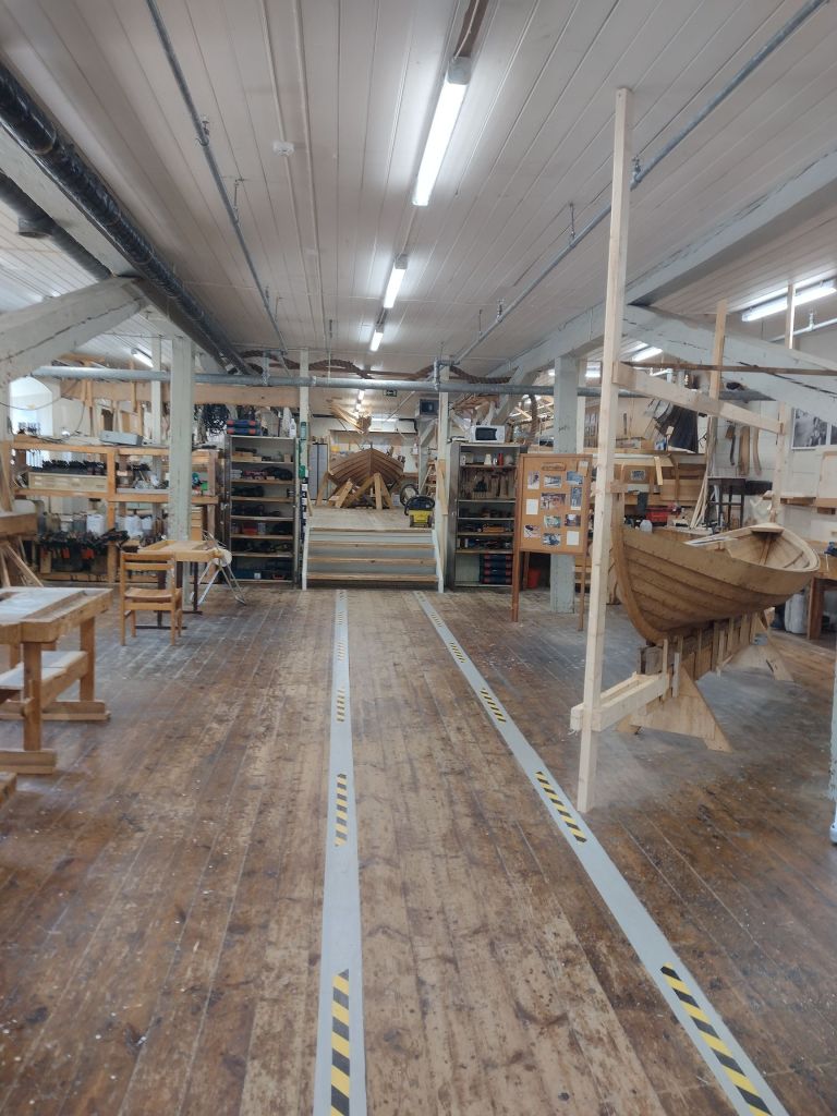 In dem alten Schaluppen- und Barkassenschuppen aus dem Jahre 1787 werden verschiedene Beiboote für die schwedische Marine gezeigt und deren Funktion erläutert. Jeweils hinter den Beibooten zeigen Bilder deren Hauptschiff.