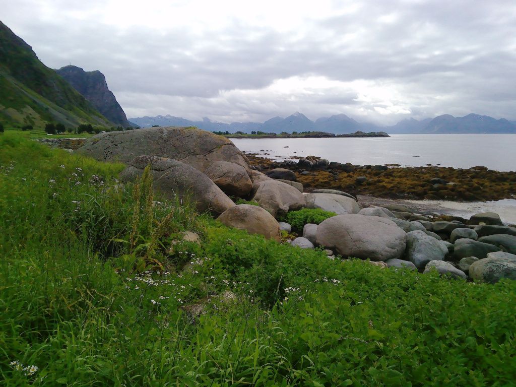 Nach einer ruhigen Nacht fuhren wir zum Fähranleger, den wir bei der Hinfahrt gestern Abend entdeckt hatten. Mit dieser Fähre, die nach Melbu auf der Insel Hadseløya fährt, sparen wir eineinhalb Stunden Autofahrt. Wir wissen nicht genau, was die Überfahrt kostete, aber im Internet ist die Rede um die 15,-€. Der Mann, der die Autos sortierte, scannte das Kennzeichen, alles andere geht automatisch.