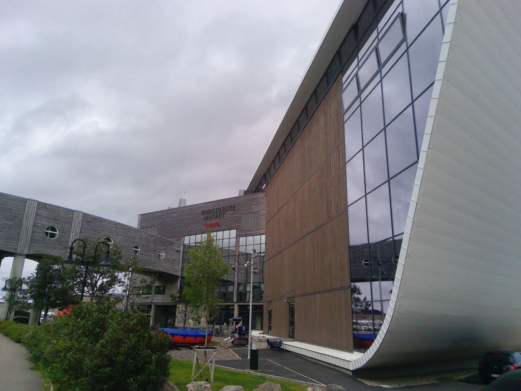 Dann kamen wir nach Stokmarknes. Am Hurtigruten-Museum fanden wir einen Parkplatz. Von dort aus erkundeten wir die kleine Stadt. Der große verglaste Bau des Hurtigruten-Museums beherbergt das Hurtigruten-Schiff „MS Finnmarken“ aus dem Jahr 1956.