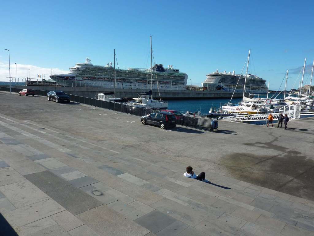 Wir wollten unbedingt noch einmal Lapas, die gegrillten Napfschnecken essen, die es in fast allen Küstenorten Madeiras gibt. Da es in den engen Gassen zu dieser Jahreszeit doch empfindlich kalt im Schatten ist, suchten wir ein Restaurant mit etwas mehr Sonne. Direkt an der Promenade fanden wir eines. Vom Außenbereich aus konnten wir das Treiben dort und bei der Seilbahn beobachten.