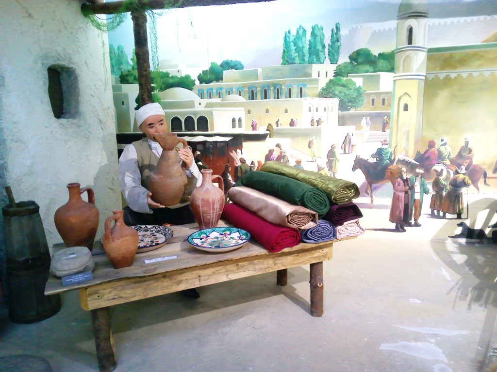 Entgegen den bisherigen Passkontrollschaltern, die alle nebeneinander liegen, befindet sich in der usbekischen Passkontrolle an der rechten Wand eine lange Theke, hinter der mehrere Zollbeamte sitzen. Die Grenzgänger stehen zwar in Schlangen an, an denen sich jedoch immer wieder Leute vorbei drängeln, um schneller durch die Kontrolle zu kommen.