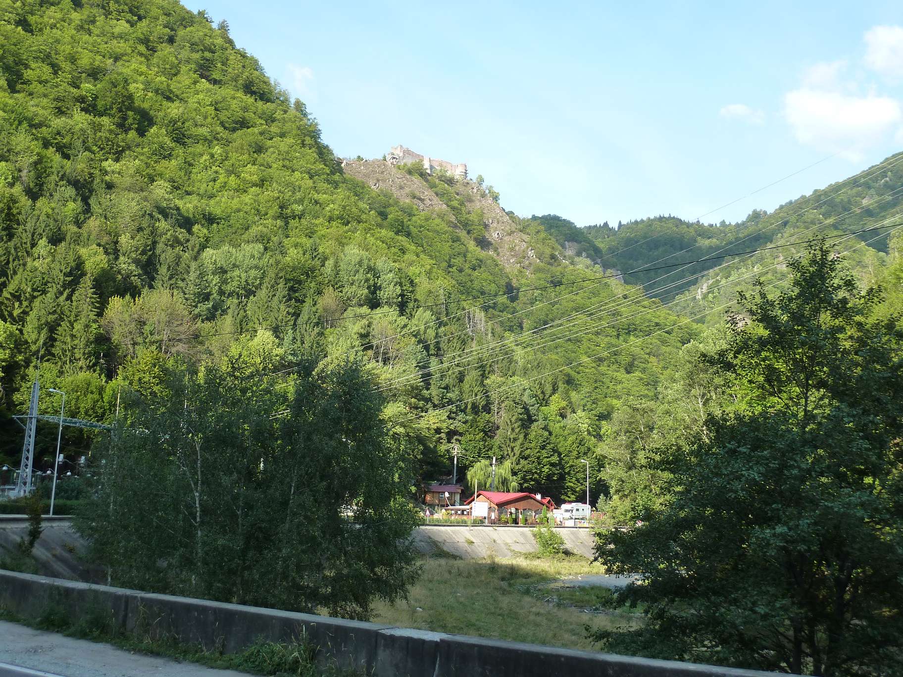 Nach dem südlichen Ende des Sees ist es nicht mehr weit bis zur Burgruine von Poenari. Diese Burgruine ist immer zu sehen, wenn es um das Dracula-Schloss geht, hoch oben auf einem Bergkamm. Hier sind wir richtig, nachdem man uns im letzten Jahr das Schloss in Bran als Dracula-Schloss verkaufte.
