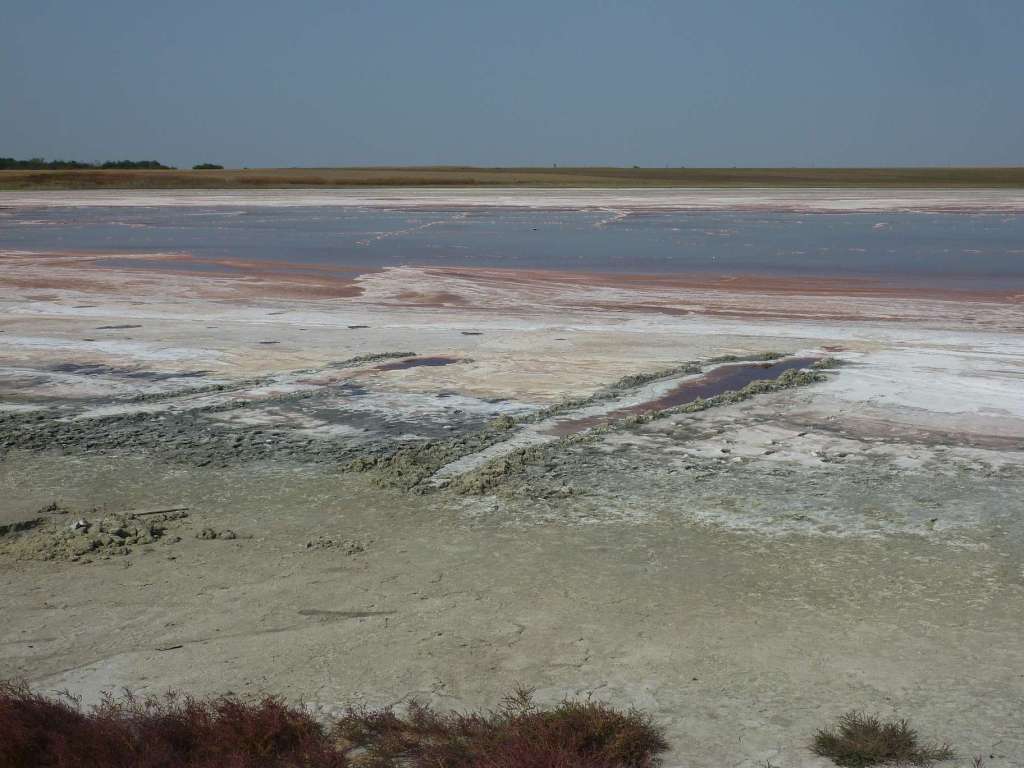 Zwischen Rimnicu Sarat und Braila fuhren wir unvermittelt an einem Salzsee vorbei. Das mussten wir uns näher ansehen und legten eine Kaffeepause dort ein. Der See liegt etwas abseits der Straße, ist aber gut zu erreichen. Das wenige Wasser, welches gerade im See zu finden ist, hat einen roten Schimmer. Den gleichen roten Schimmer haben die flachen Pflanzen rund um den See angenommen. Die trockenen Bereiche sind weiß. Jedenfalls ist der See sehenswert.