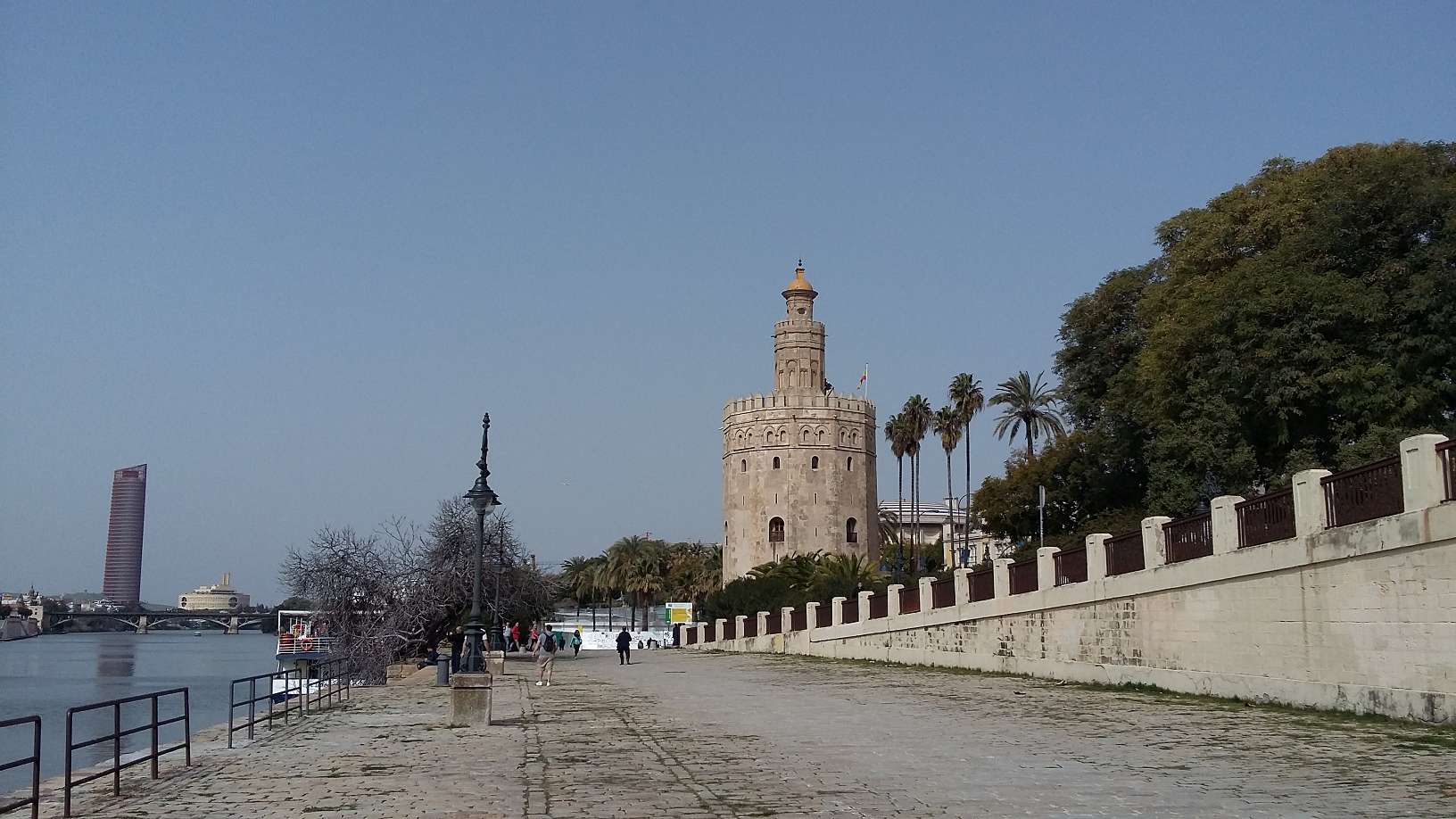 Nun kann man seine Schritte zum Río Guadalquivir lenken, der durch Sevilla fließt und bei Sanlúcar in den Atlantik mündet. Am Goldenen Turm, der abseits der Stadtmauer am Ufer steht und eine militärische Funktion erfüllte, befindet sich der Anleger für Flussrundfahrten. Gold hat der Turm niemals gesehen. Möglicherweise ist sein Name von etwas hergeleitet, was ihn einmal golden aussehen ließ.