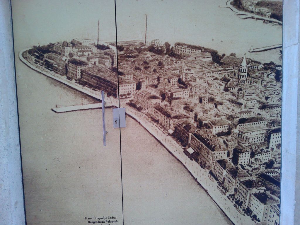 In der Nähe fanden wir eine alte Fotografie von Zadar, die eine Türe ziert. Sie zeigt Zadar vor der Zerstörung durch die Bombardements des 2. Weltkrieges.