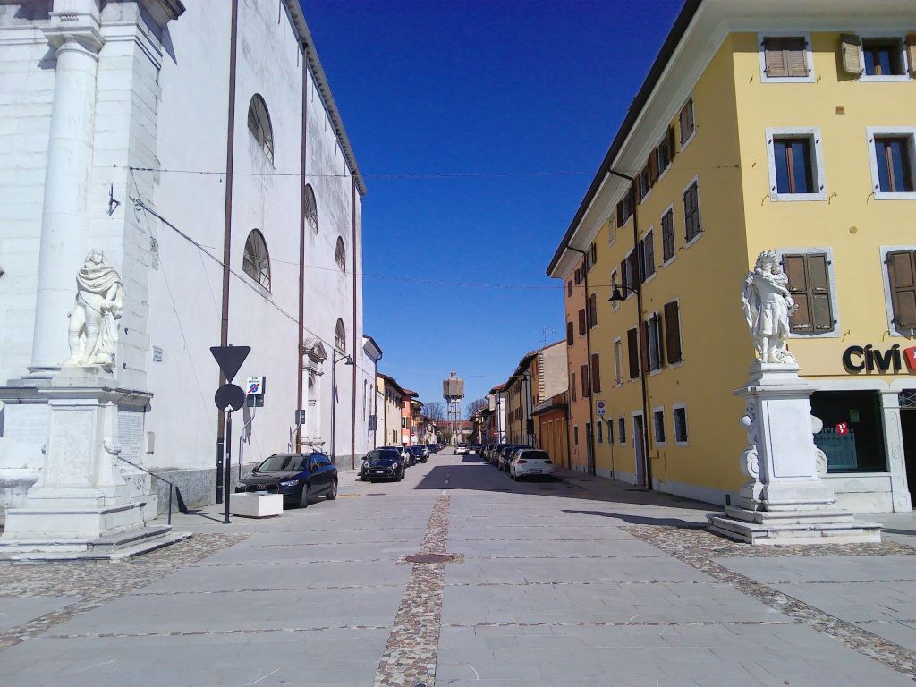 Wir betraten die Stadt durch das Porto Cividale. Das ist ein großes Stadttor, welches außen mit Säulen und Türmchen verziert wurde. Durch dieses gelangt man in den Innenhof des Tores, in dem sich sicher das Wachpersonal aufhielt, danach geht man noch durch das innere Tor, das jedoch schlichter gestaltet ist.