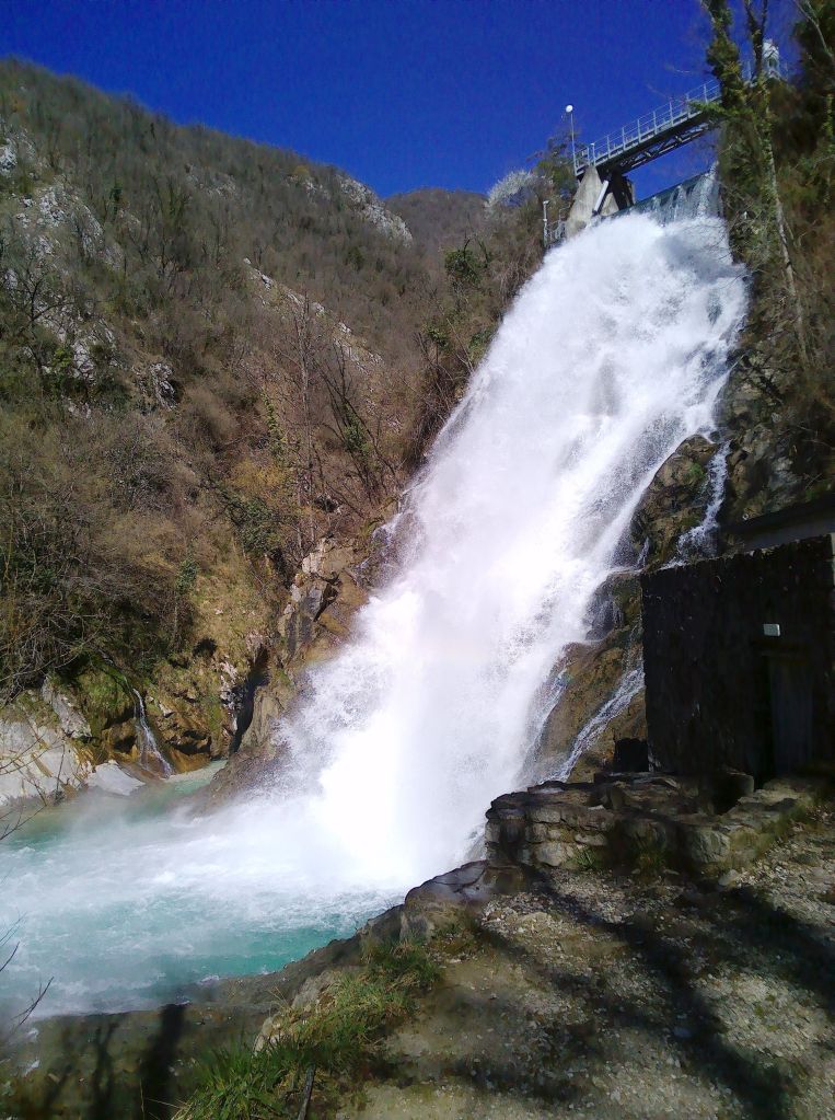 Sehenswert ist auch der Crosis-Wasserfall. Flussauf wird der Torre gestaut. Ein Teil des Wassers rinnt über die Staumauer, an anderer durch das Stauwerk. Jetzt, Mitte März, ist der Wasserfall ziemlich beeindruckend.