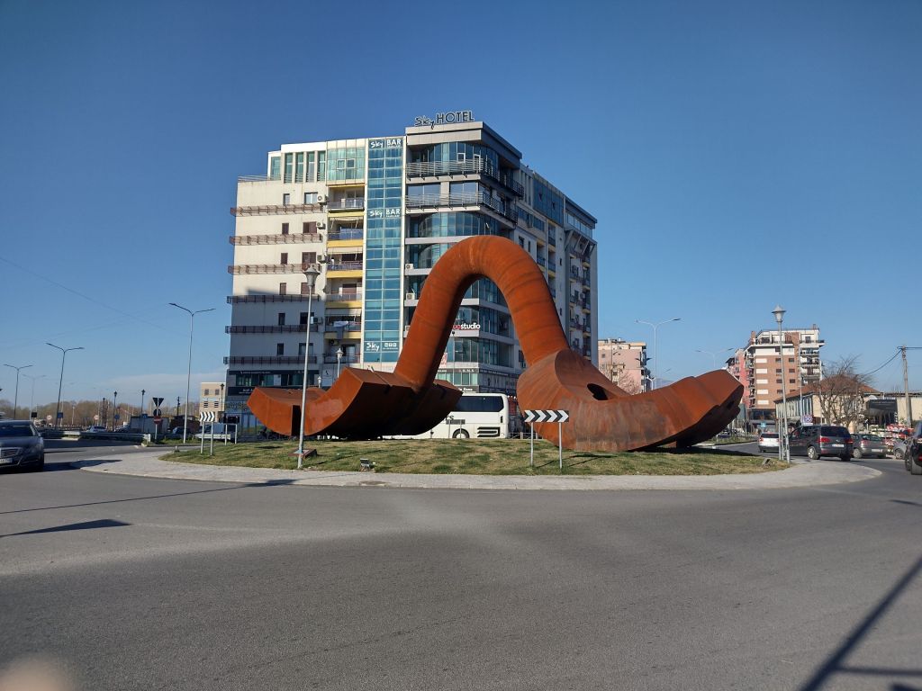 Auf der Suche nach dem nächsten Ziel vor Tirana stießen wir auf Golem. Dort steht in einem großen Kreisverkehr der „Meteor“. Außerdem sieht die Strandbebauung ganz ordentlich aus, und es soll einer der besten Strände Albaniens sein. Also fuhren wir nach Golem und stellten das Wohnmobil am südlichen Rand von Golem ab, direkt am Qerret-Strand.
