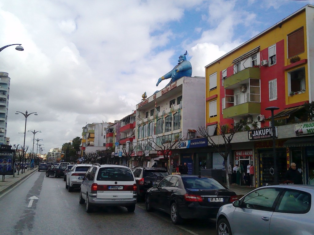 Dann bogen wir in die Rruga Vilson ein und erreichten so das farbenfrohe und geschäftige Altstadtviertel. Die Kole Idromeno Straße ist das Aushängeschild. Es ist eine Fußgängerzone mit vielen Straßencafés und kleinen Läden. Trotzdem sind dort auch Fahrräder und sogar Mopeds unterwegs, die sehr störend sind. Die Polizei ist zwar überall unterwegs, aber die kontrollieren lieber die Autofahrer, als sich mit solchen „Kleinigkeiten“ abzugeben.