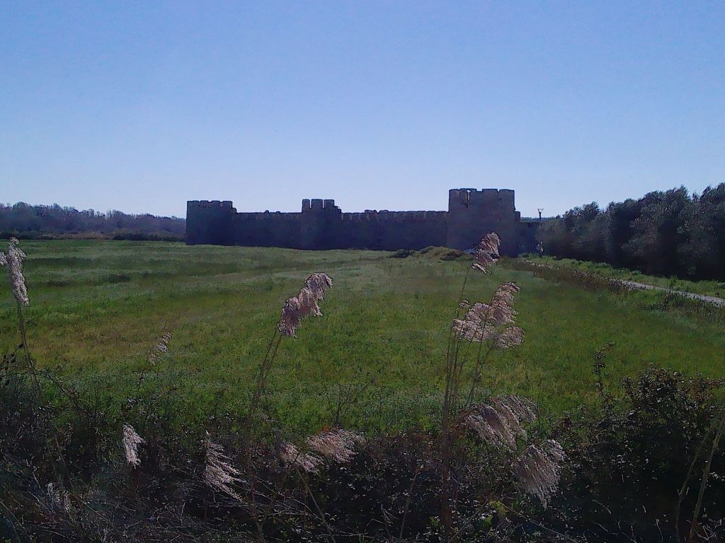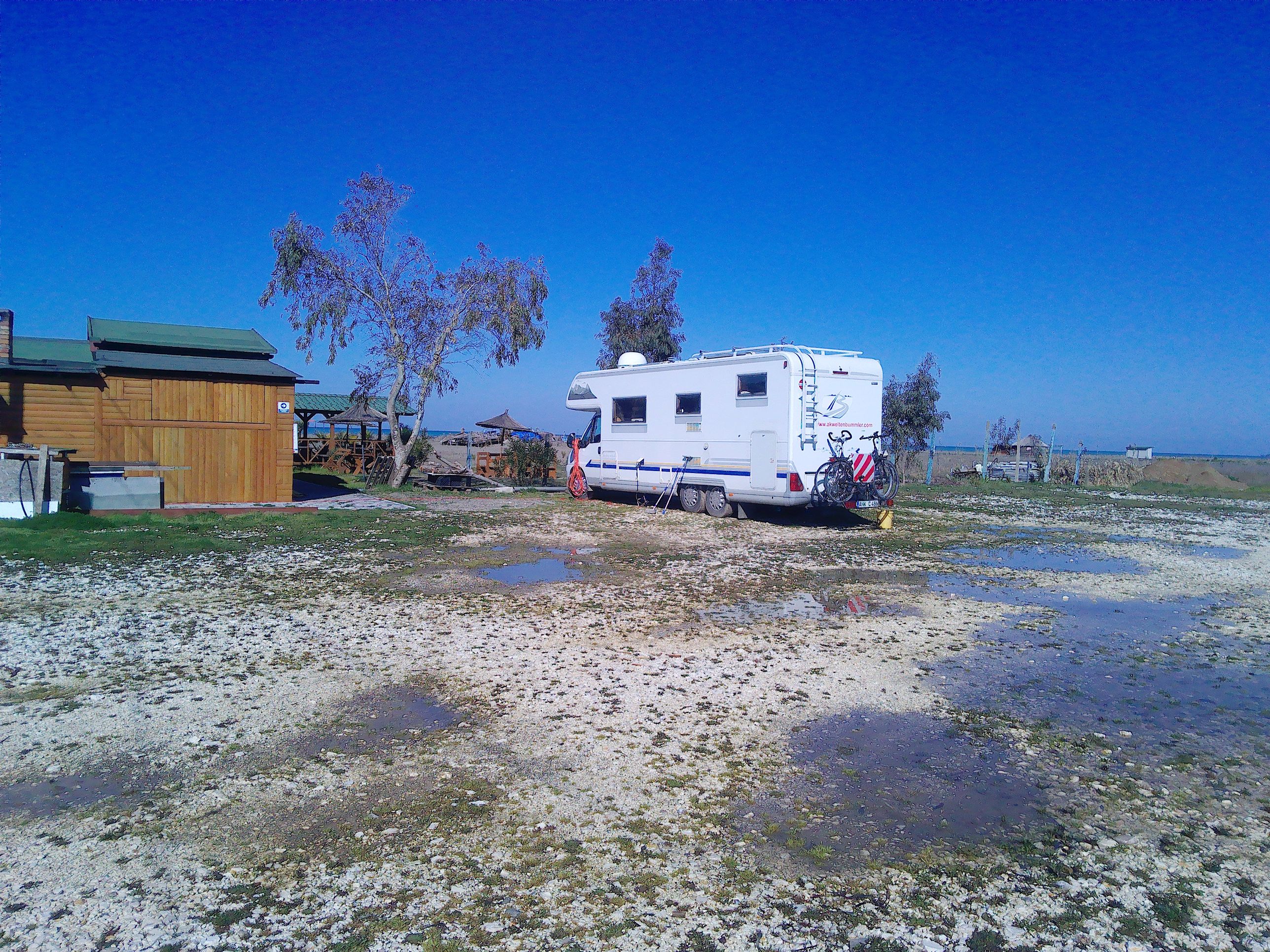 Nach langem Suchen fanden wir den Parkplatz „North Spot“, direkt am südlichen Kreisverkehr, in dessen Mitte eine gigantische Stahlskulptur steht, nahe der Burgruine. 24 Stunden kosten dort 12,-€ inkl. Wasser, Strom und Internet. Der Lärmpegel hält sich in Grenzen, da er etwas abgeschirmt liegt.