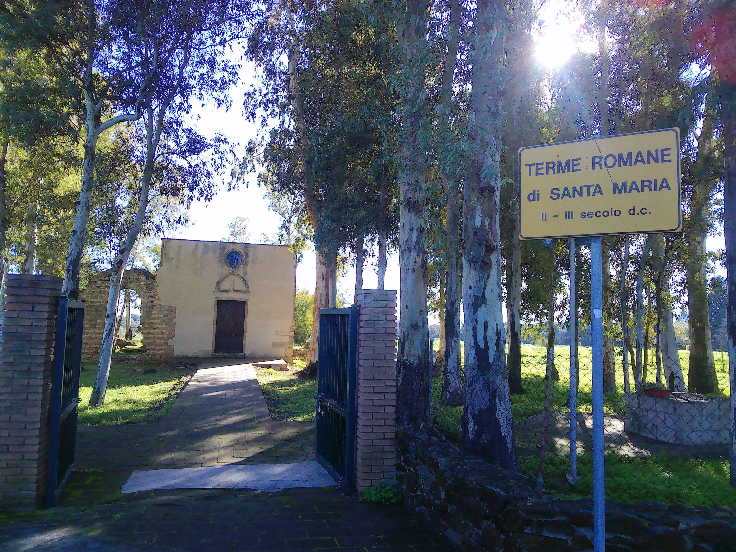 Seit dem Verfall wurde die Therme vom Mittelalter an mehrmals überbaut. Das heutige Gebäude, die kleine Kirche Santa Maria, stammt aus dem Jahre 1926. Seit dem 17. Jahrhundert ist die Stelle schon ein Landheiligtum. Die seitlichen Grundmauern der Therme liegen jedoch offen und man kann die Form des Bauwerks erkennen, sowie eine Ecke, an die direkt die Kirche gebaut wurde.