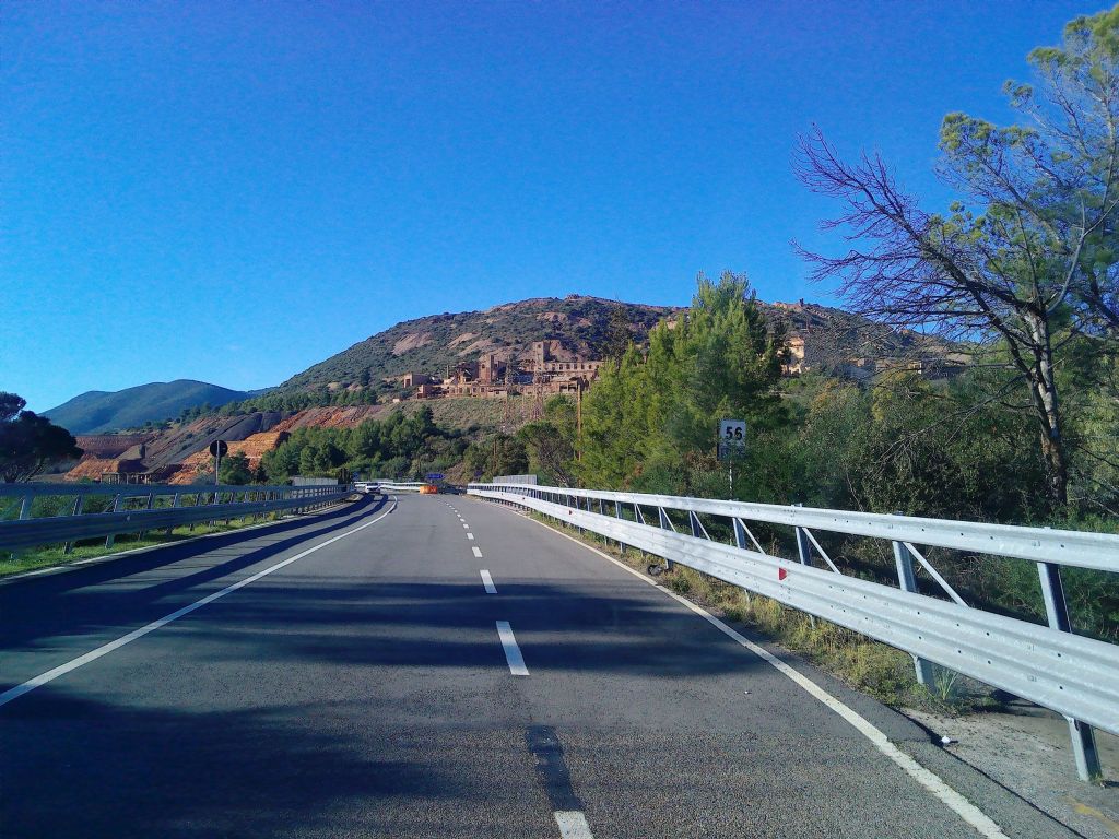 Auf dem Weg von Iglesias nach Fontanamare, bei Monteponi, steht eine Bergbauanlage direkt an der Straße.