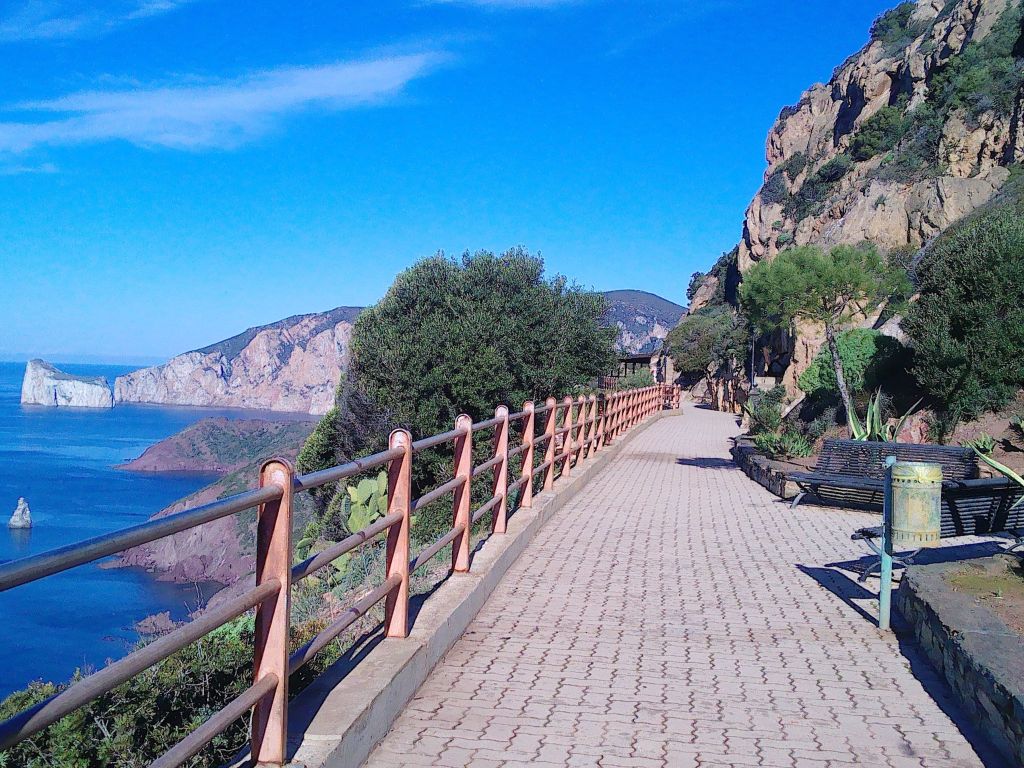 Bei Sonnenschein sind der Weg und die Aussichten spektakulär. Die bunte Steilküste ist ein Hingucker, wie auch das Kap mit Porto Flavia und der Felsen Pan di Zucchero.