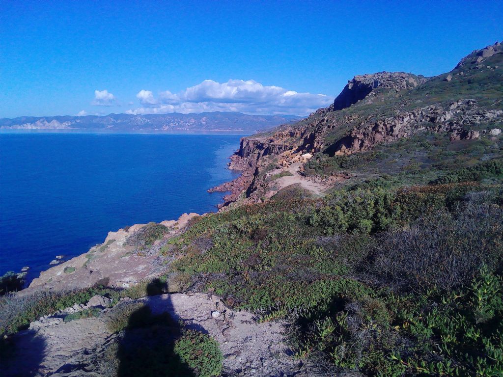 Lenkt man seine Schritte nördlich aus Portoscuso heraus, in Richtung Capo Altano, dann gelangt man durch eine wunderschöne Landschaft, die gut dazu geeignet ist, seinen Blutdruck herunter zu fahren. Mit vollen Zügen kann man die Natur genießen, die Ausblicke auf die Felsformationen rechter Hand und das Meer mit der Insel San Pietro auf der linken Seite.