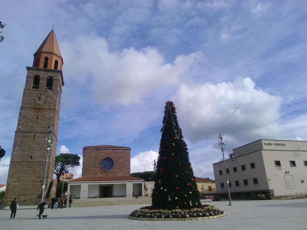 Diese ist, wie schon Arborea, eine Reißbrettstadt vom Anfang des 20. Jahrhunderts, von Mussolini initiiert. In der Umgebung wurde Kohle abgebaut, daher leitet sich auch der Name der Stadt ab, Carbonia. Viele Straßen im Zentrum verlaufen parallel, es gibt große Plätze und jede Menge große Wohn- und Geschäftshäuser aus Beton. Dieses Konzept sorgt für viel Licht und Freiheit zum Atmen. Viel Grün wurde angepflanzt und die Plätze schön gestaltet. Eine Ähnlichkeit zur sozialistischen Architektur ist hier durchaus zu erkennen.