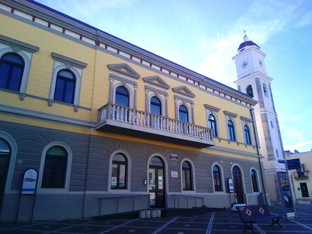 Das Zentrum des Örtchens Pula ist ganz nett. An vielen Stellen sieht man noch, wie alt es ist, aber vieles wurde auch liebevoll rekonstruiert und schick gemacht. Wo immer man hingeht, irgendwann trifft man wieder auf die dreieckige Piazza del Popolo, das Zentrum der Altstadt. Ein Pavillon in einer der Ecken zeigt an, dass hier viel Platz für Kultur ist.