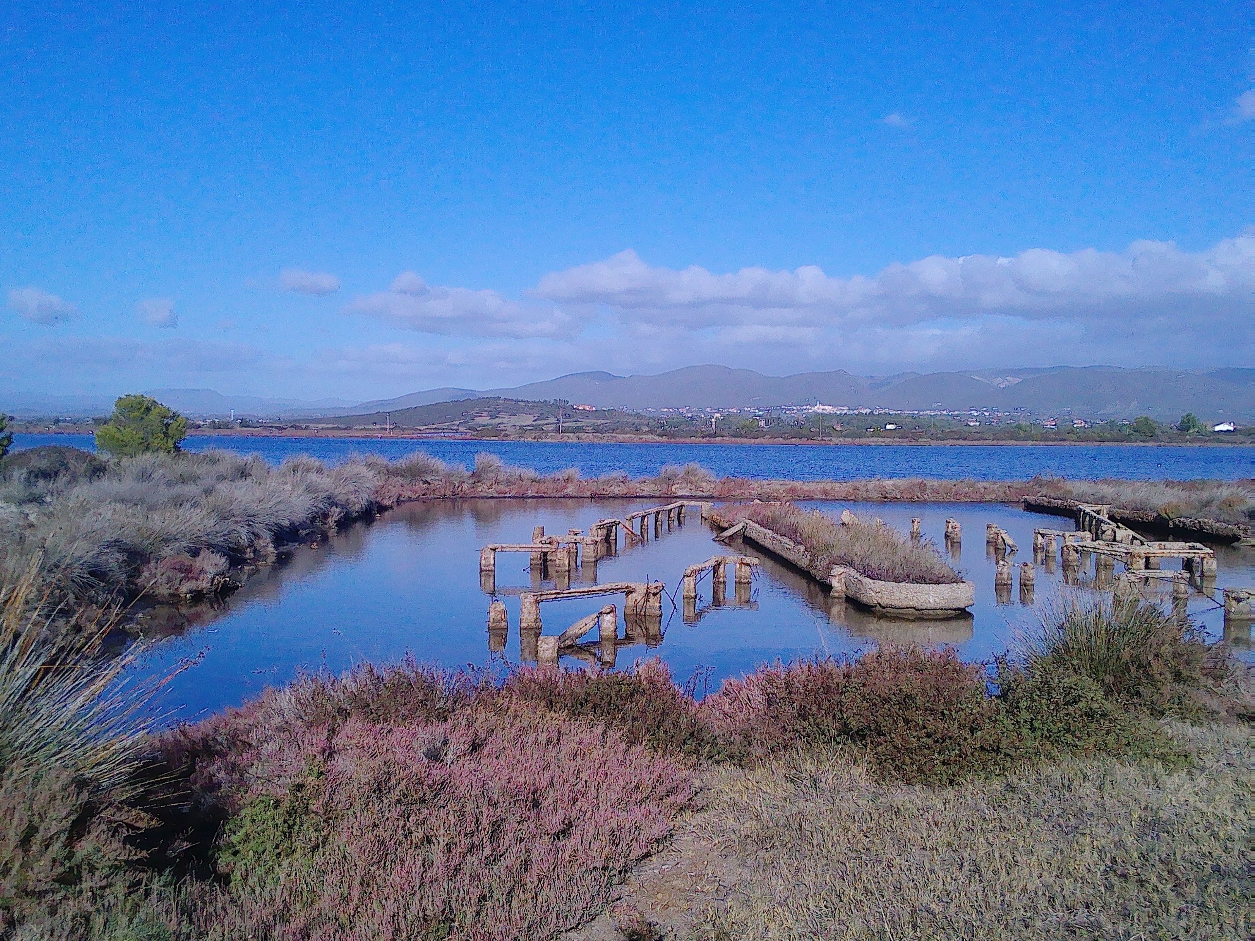 An den Salinen, neben der Straße im Wasser liegend, sind die Reste der alten römischen Straße auszumachen. Auffallend parallel liegende Steine ragen aus dem Wasser.