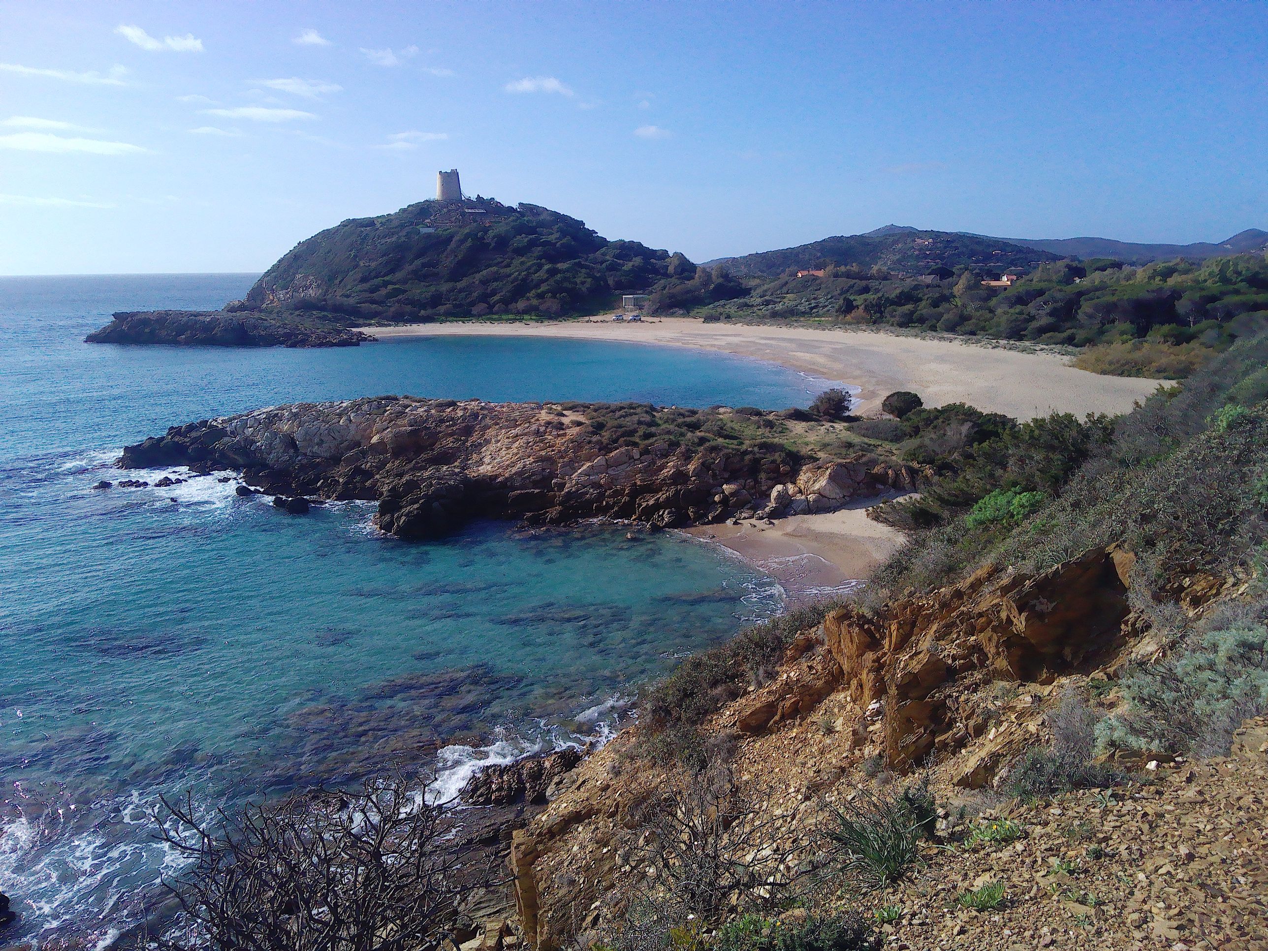 Am Capo Malfatano schiebt sich eine tiefe Bucht ins Land, und gleich dahinter breitet sich der Strand von Tuerredda mit der gleichnamigen Insel im Wasser aus. Leider sind in diesem Bereich alle Parkplätze gesperrt und ein Übernachten ist nicht möglich. So kamen wir nach Chia.