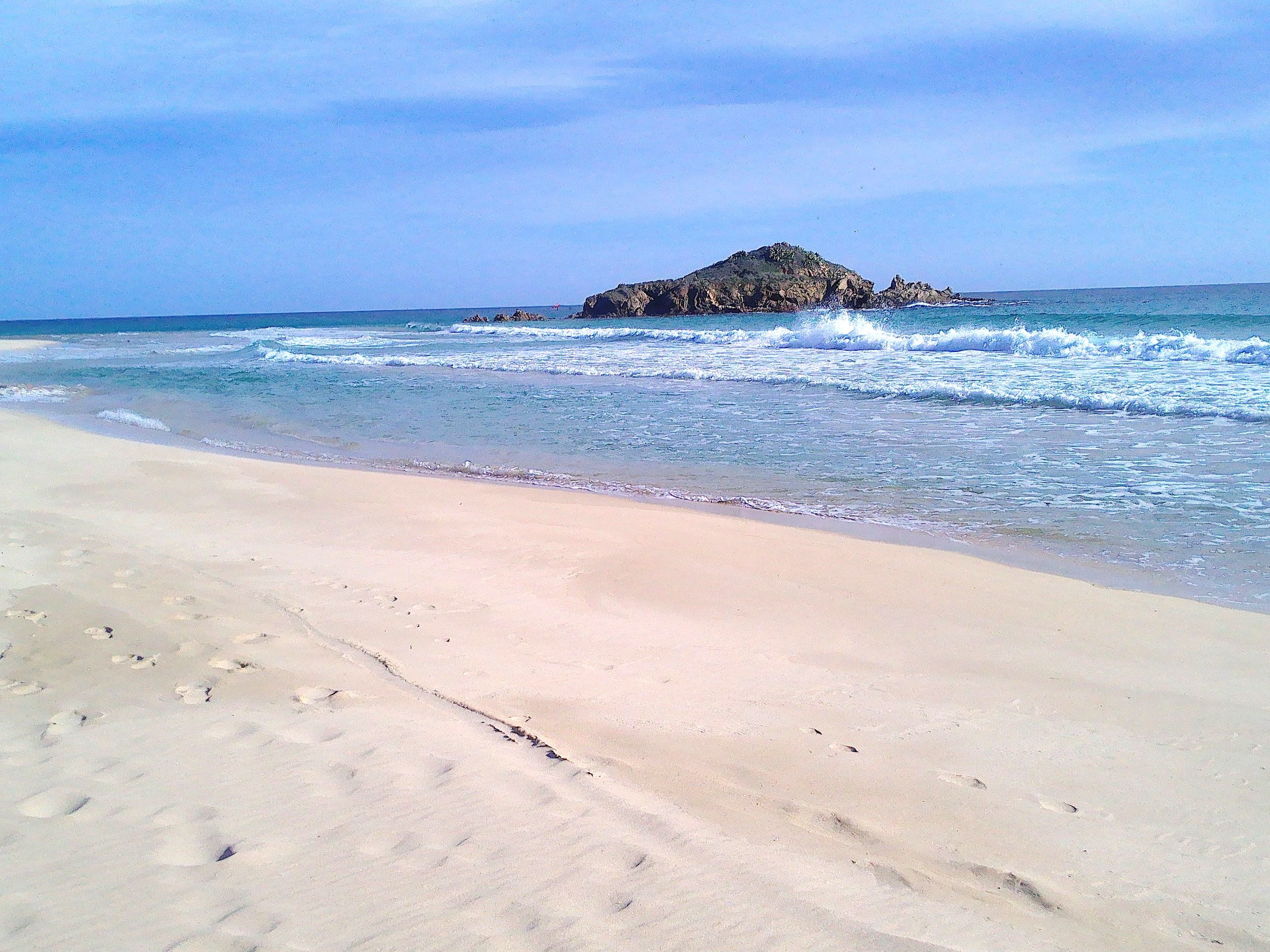Der Hügel lässt sich leicht vom oberhalb liegenden Parkplatz besteigen. Von dort oben hat man einen schönen Blick auf den Strand, die Felsenkette im Wasser und die Küste entlang.