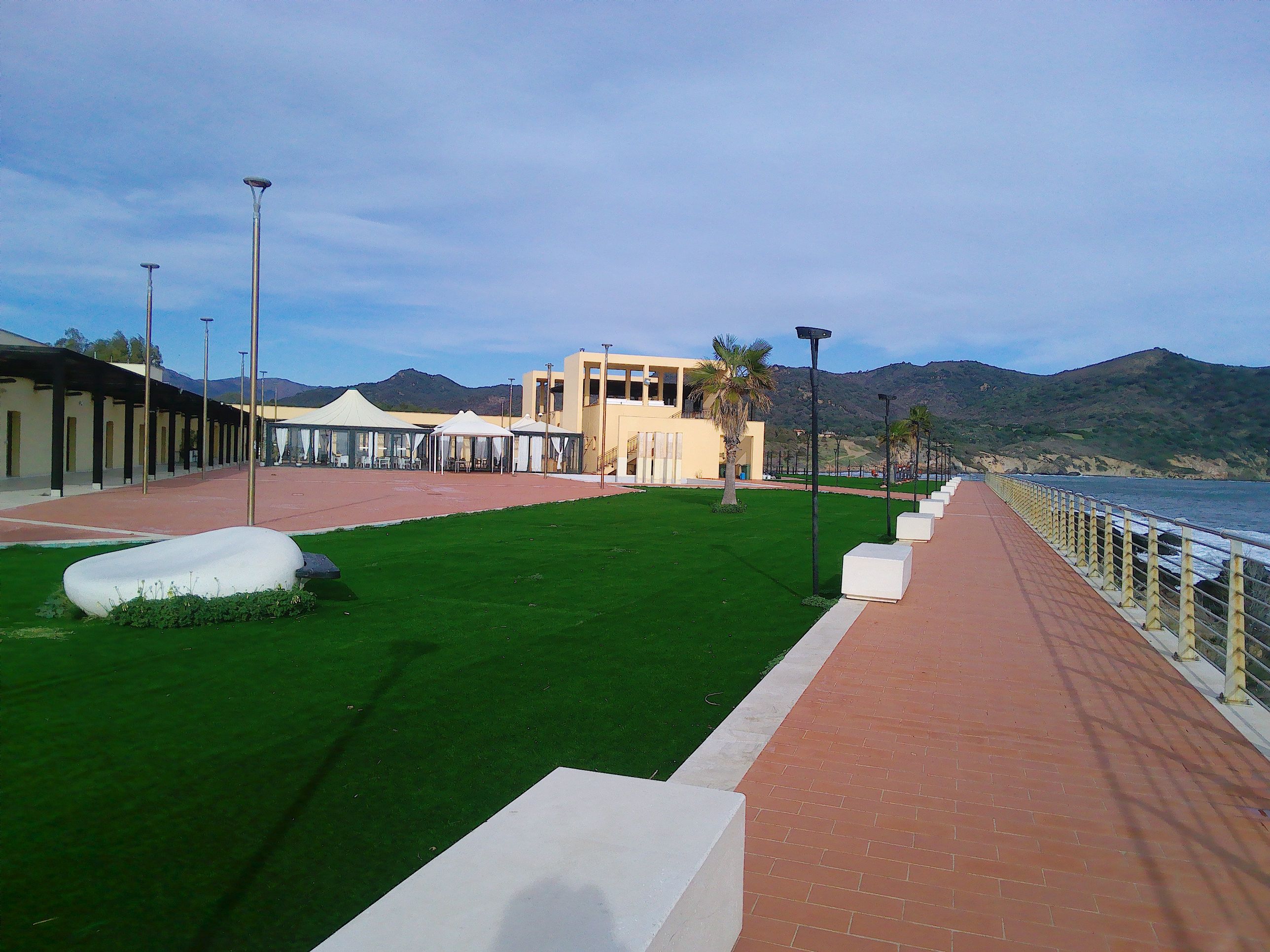 Wir spazierten durch den Ort Perd´e Sali. Hier gibt es kaum Durchgangsverkehr, da die Häuser alle an Stichstraßen liegen. Auffallend ist der Baustil der meisten Häuser: traditionell, mit einem speziellen Putz versehen und überall „runden Ecken“, wie die Adobe-Bauweise in New Mexico, USA. Uns gefällt das sehr gut, da sich alles organisch in die Landschaft einfügt. Daneben stehen auch hochmoderne Villen, die das Gesamtbild etwas stören. Der Strand ist sehr schmal und nur an wenigen Stellen frei zugänglich, aber man hat einen schönen Blick zur Marina hinüber.