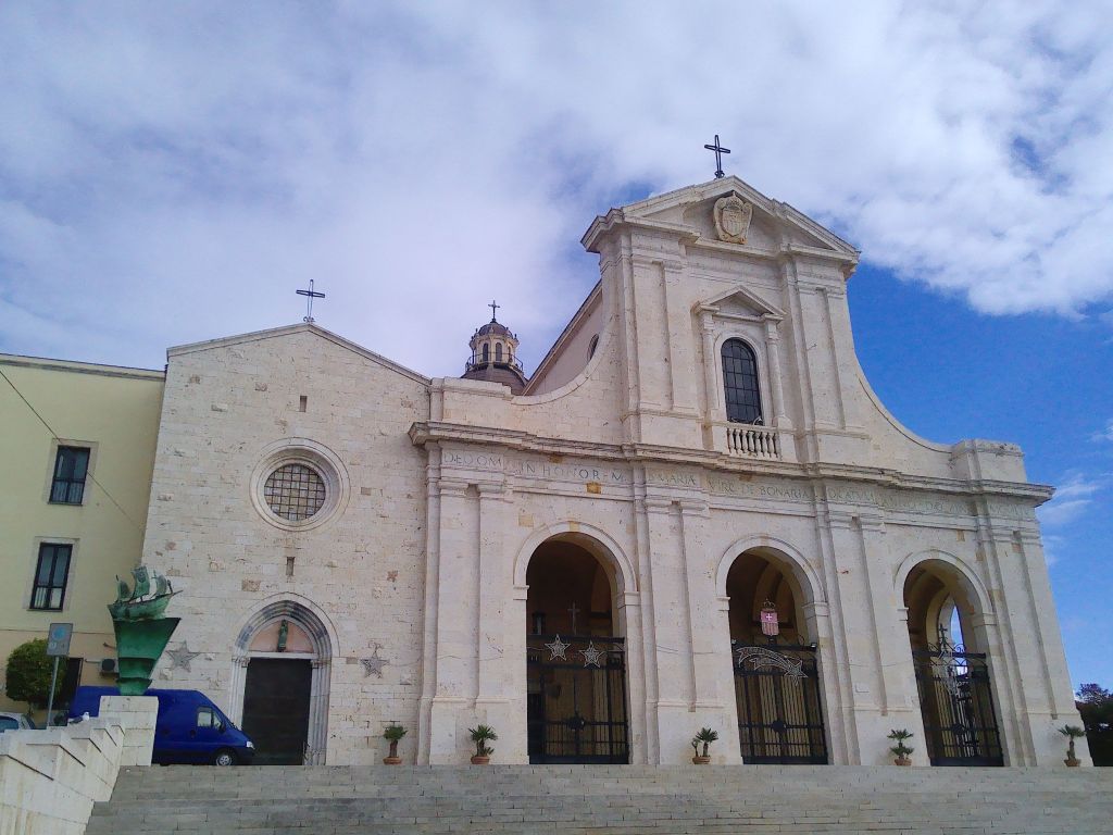 Am Tag der Fährüberfahrt fuhren wir nach Cagliari und parkten das Wohnmobil sicher und ruhig auf dem Parkplatz Cuore, an der Levante-Mole. Von dort aus kann man die 2,5 Kilometer zurück zur Via Roma spazieren, entweder auf der Promenade oder durch die Straßen parallel zur Promenade. Dabei kommt man an der Wallfahrtskirche zur Heiligen Jungfrau Maria mit einer riesigen Freitreppe davor vorbei, die etwas erhöht steht.