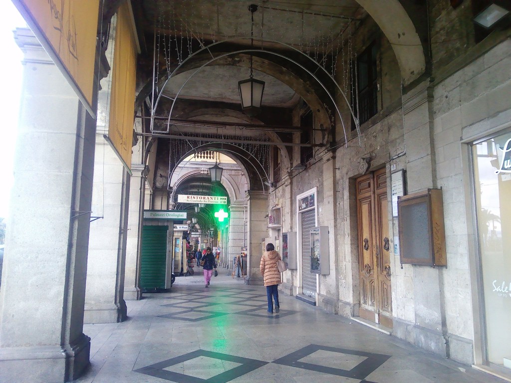 Der Arkadengang wird mehrfach von Gassen unterbrochen, die hinauf in die Altstadt Cagliari´s und zum Kastell führen.