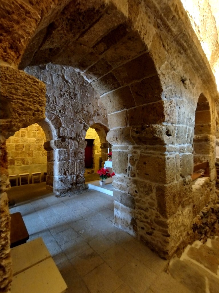 Gleich neben dem Haupteingang sind steinerne Sarkophage aus dem 5./6. Jahrhundert zu sehen. Diese Basilika ist also etwas ganz Besonderes.