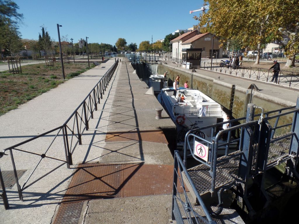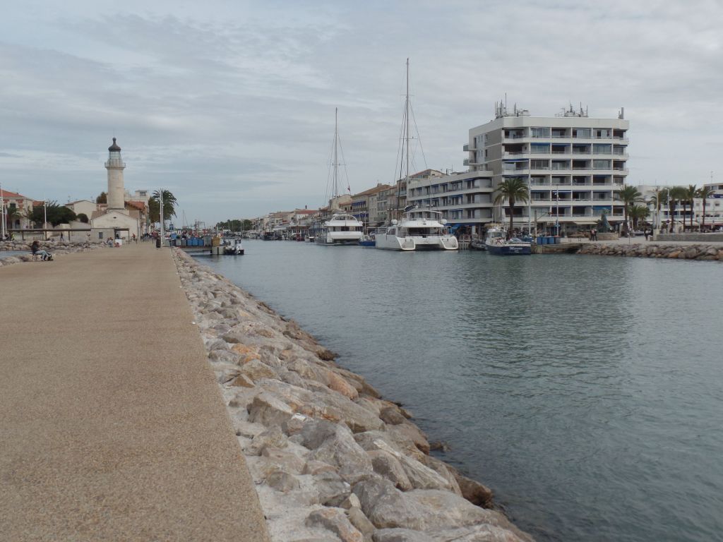 In der Regel bekommt man von den Gezeiten am nördlichen Mittelmeer nichts mit, so gering ist der Tidenhub. In Le Barcarès fand ich einen Gezeitenstrom. Von der Mündung des Kanals in das Meer bis zur Einengung mit dem Gezeitenstrom liegen mehrere hundert Meter, inklusive zweier Marinen. Trotzdem ist der Strom so stark, dass er mit dem typischen Geräusch eines Gezeitenstromes durch die Einengung fließt und ein beeindruckendes optisches Erlebnis bietet.