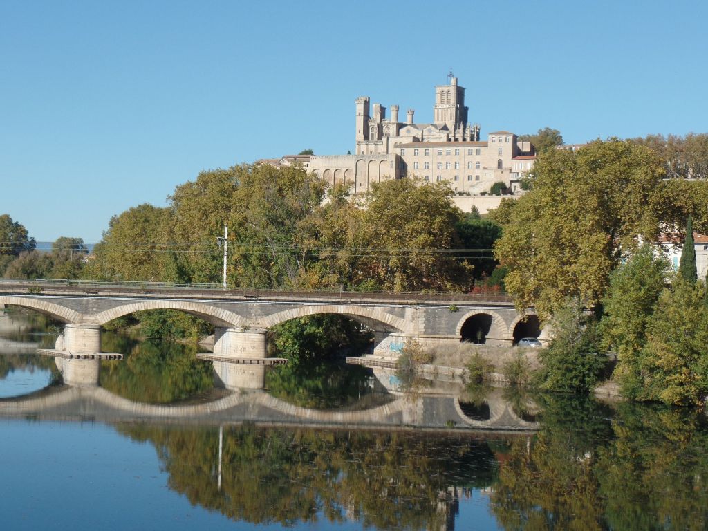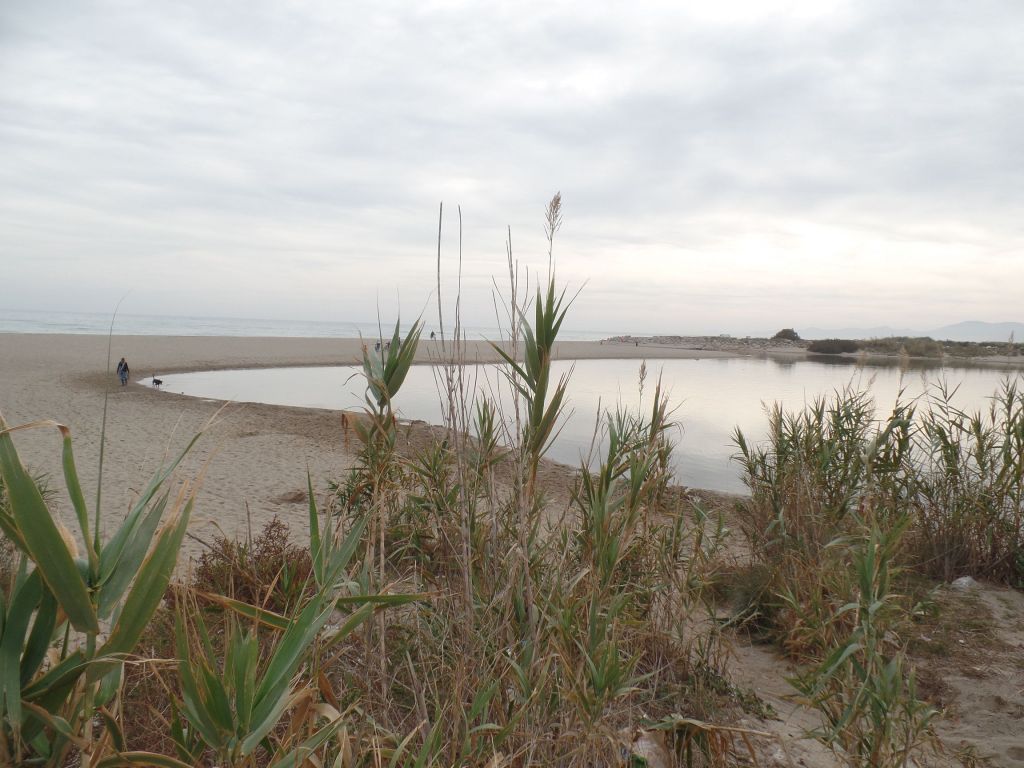 Eine Fahrradtour führte uns zum Fluss Agly, der gerade nicht das Meer erreicht, weil sich eine Sandbank davor aufgebaut hat. Der Fluss ist naturbelassen, mit vielen Inseln und dicht bewachsenen Ufern.
