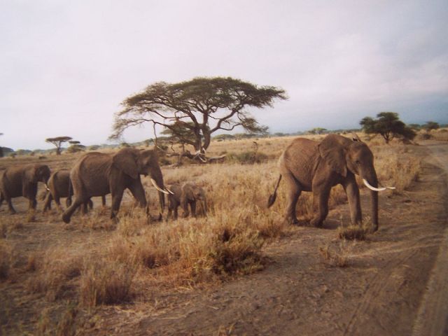 Später kamen wir in die Savanne. Diese Landschaft hat ihren eigenen Reiz. Die meisten Gewächse haben Dornen, das Gras ist meistens vertrocknet, hier und da lockern ein paar Schirmakazien die weite Ebene auf. Dort konnten wir Thompson-Gazellen, Elenantilopen, Giraffen, Warzenschweine, Geier, einen Sekretär, Strauße und Wasserböcke beobachten. Zwei Kadaver, die zum Kreislauf des dortigen Lebens nun einmal dazu gehören, ließen uns die Tragödien erahnen, die sich hier abspielen beim Spiel „Fressen oder Gefressen werden“.
