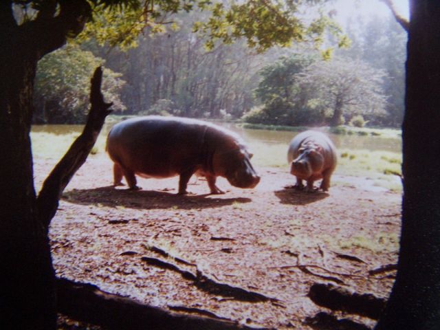 Die benachbarte Lodge eine ganz besondere Lodge. Auf Ihrem Gebiet liegt ein größeres Wasserloch, in dem Krokodile und Nilpferde leben. Für die Bewohner der Lodge ist das nicht ungefährlich, denn tagsüber laufen die Krokodile durch das Gebiet, abends kommen die Hippos aus dem Wasser. Da die noch gefährlicher sind als die Krokodile, müssen die Gäste ab 19 Uhr in ihren Bungalows bleiben.
