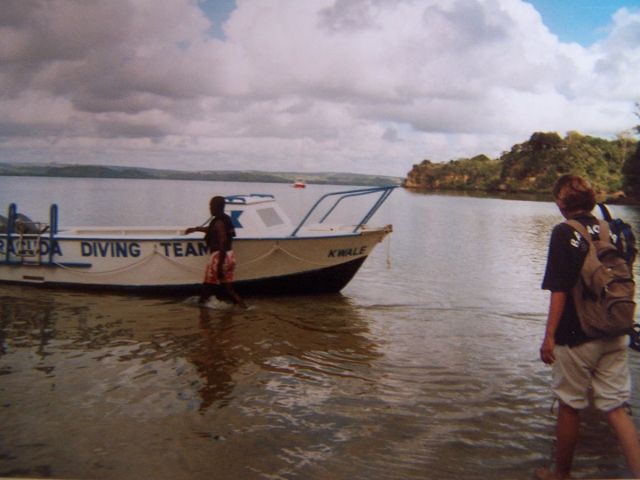 Zur Einstimmung der Fahrt spielte uns die Mannschaft um Käpt´n Issa ein Ständchen auf Muscheln, Stöcken, Trommeln und Blechen. Das Lied war zur Zeit überall in Kenia zu hören und geht so: Jambo, Jambo Bwana, Habari gani, Mzuri sana… Hakuna Matata, Karibu in Kenya. Es ist wirklich ein Ohrwurm. Das heißt übersetzt: Hallo, Hallo Mister, wie geht es Ihnen, mir geht es gut… alles kein Problem, Willkommen in Kenia. Suaheli ist eine relativ einfach zu lernende Sprache.