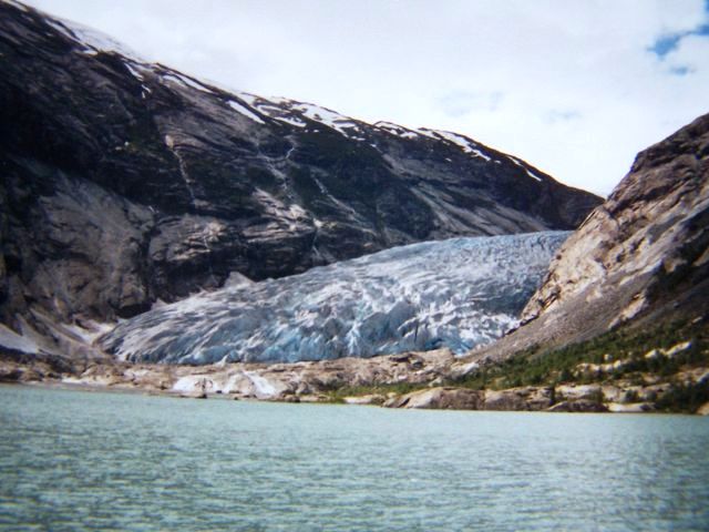 Das Jostedalsbreengebiet im Herzen von Norwegen ist der größte Gletscher Europas, der viele Zungen in die Täler schiebt. Wir besuchten den Nigardsbreen, der ist am einfachsten von Graupne aus zu erreichen. Der Weg führte uns durch ein wunderschönes, kleines Tal. Nachdem man „Zoll“ gezahlt hat, kann man auf einen Parkplatz fahren. Von dort hat man schon einen sehr schönen Blick auf die blaue Gletscherzunge. Davor liegt ein See, in den das Gletscherwasser fließt.