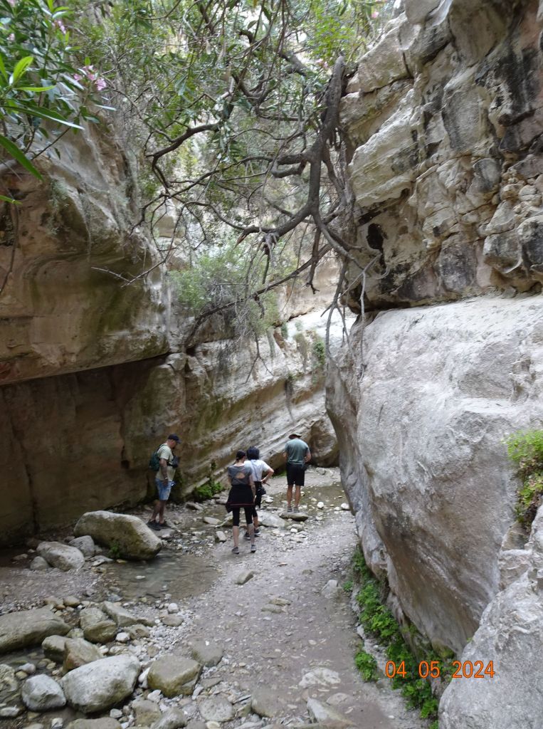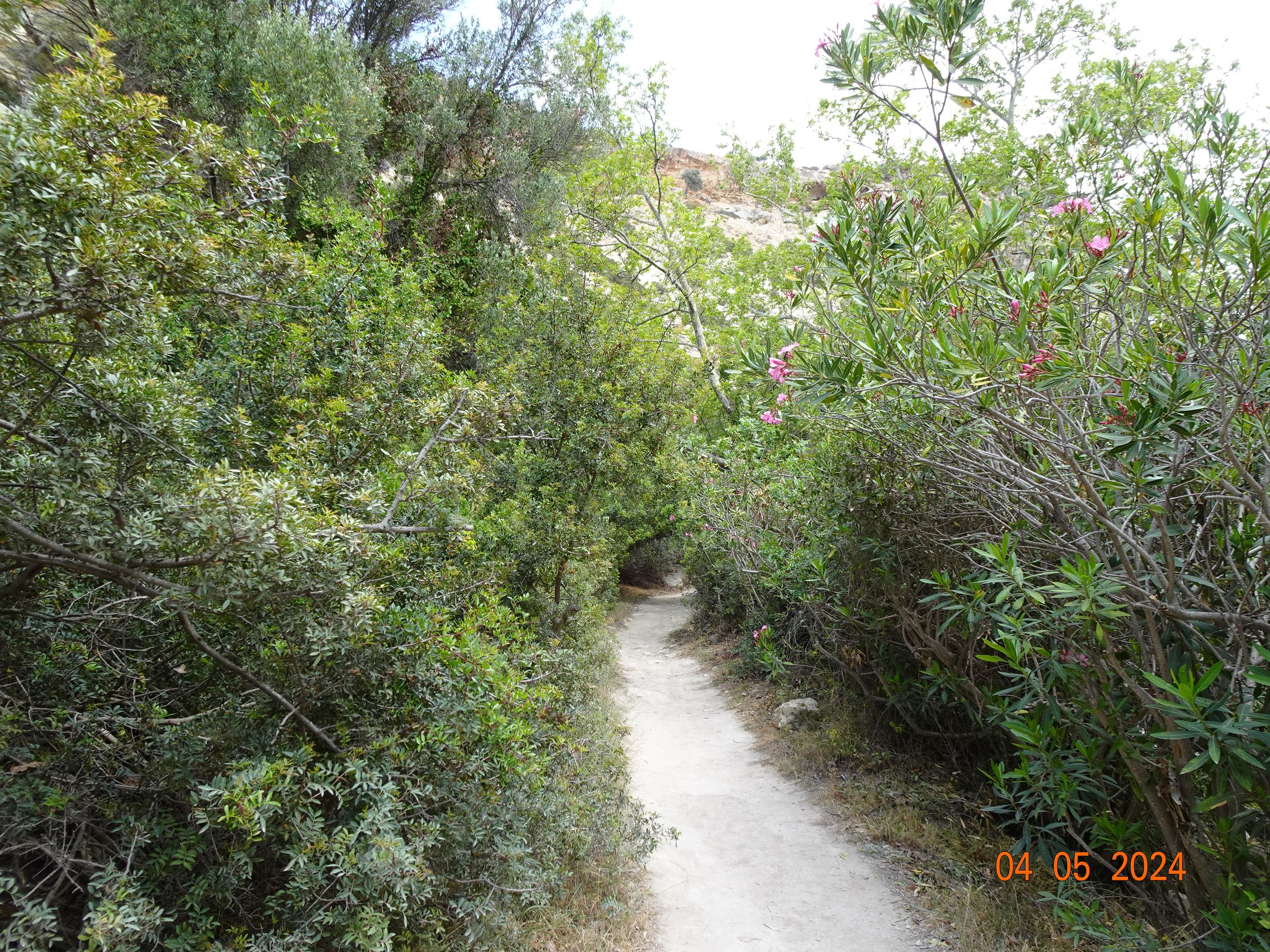 Am Eingang zur Schlucht kommt man nur noch zu Fuß weiter. Ein halbwegs schmaler Weg führt in die Schlucht. Am Wegrand stehen an vielen Bäumen oder Sträuchern die Namen derselben, wie in einem botanischen Garten.