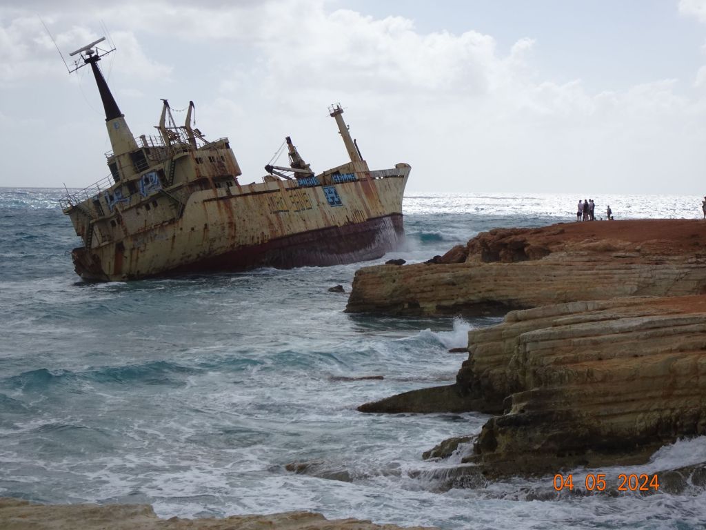 Auf der Sea Caves Avenue fährt man weiter nach Süden, bis man beim Wrack der Edro III an die Küste abbiegt. Auf der Jeeptour haben wir das Wrack nur aus einiger Entfernung gesehen. Nun wollten wir näher heran und kamen deshalb von der anderen Seite der Bucht. Von hier aus ist das Wrack fast zum Greifen nahe, so dicht liegt es an der Küste.