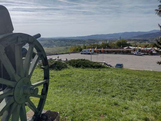 Kurz vor Dragoslavele, an der E574, trafen wir auf einen gewaltigen Sandsteinbau. Wir hielten an, um uns das anzusehen. Wie sich herausstellte, ist es ein Mausoleum für die im 1. Weltkrieg gefallenen Soldaten, die gegen die österreichisch-ungarischen auf der einen und der russischen Besatzer auf der anderen Seite, gefallen sind.