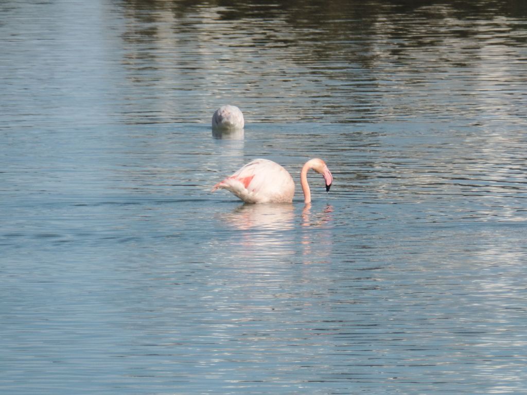 Schöner ist jedoch die Saline auf der anderen Seite des Parkplatzes, die sich hinter einigem Grün verbirgt. Man kann die Saline auf einem gut zwei Kilometer langen Weg umrunden, hat aber nur an ganz wenigen Stellen Gelegenheit einen Blick auf sie zu werfen. Selbst dort, praktisch mitten in der Stadt, halten sich Flamingos auf. Der Blick auf die Saline und die angrenzenden Hochhäuser ist schon besonders.