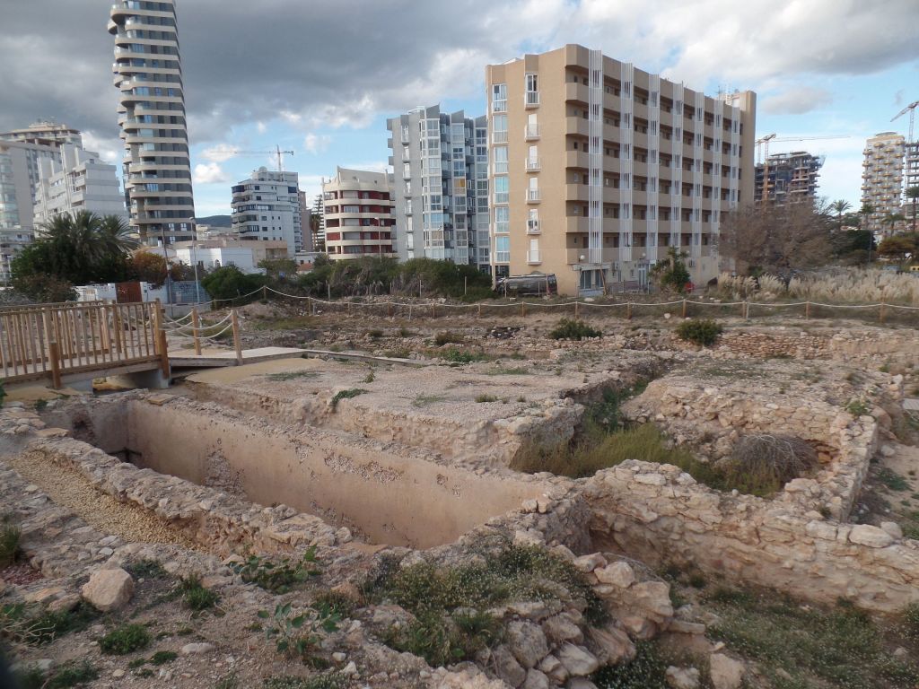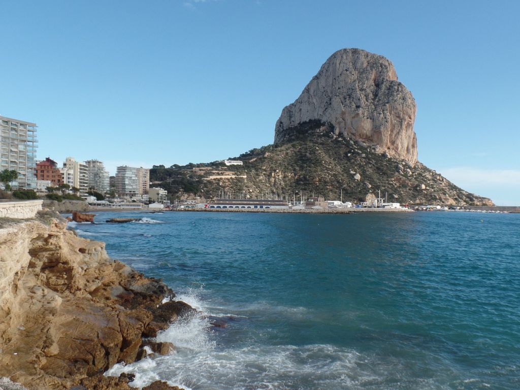 Unterhalb breitet sich ein kleinerer Strand und der alte Fischerhafen aus, an dem Hotels und Restaurants liegen. Daran schließen sich kleine Felsbuchten an, bevor man den Hauptstrand von Calpe erreicht.