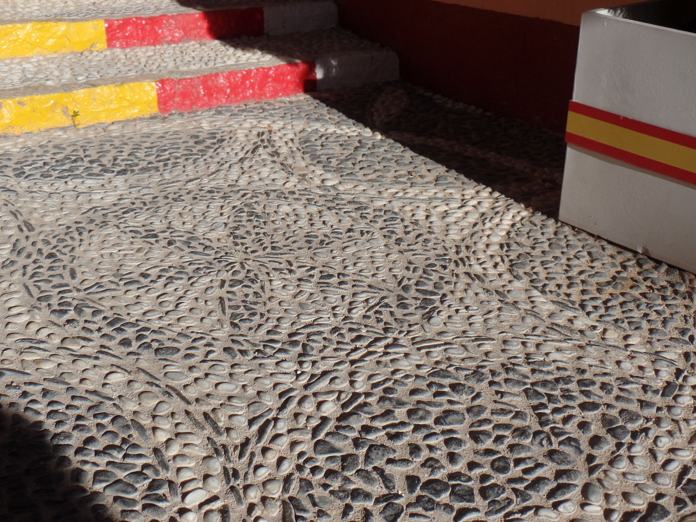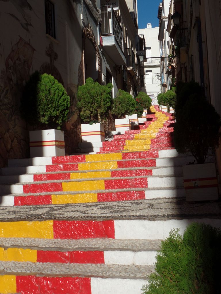 Am nächsten Morgen machten wir einen Abstecher in die nahe Altstadt von Calpe. Vor allem die Carrer de Puchalt, eine Gasse unterhalb der Burg, ist sehenswert. Die Gasse ist eine Treppe, deren Setzstufen in den spanischen Farben erstrahlen. Die Trittstufen sind auf maurische Art mit Flusskieseln gestaltet. Die netten Eingänge der Häuser und die Grünpflanzen machen die Gasse zu einem Hingucker.