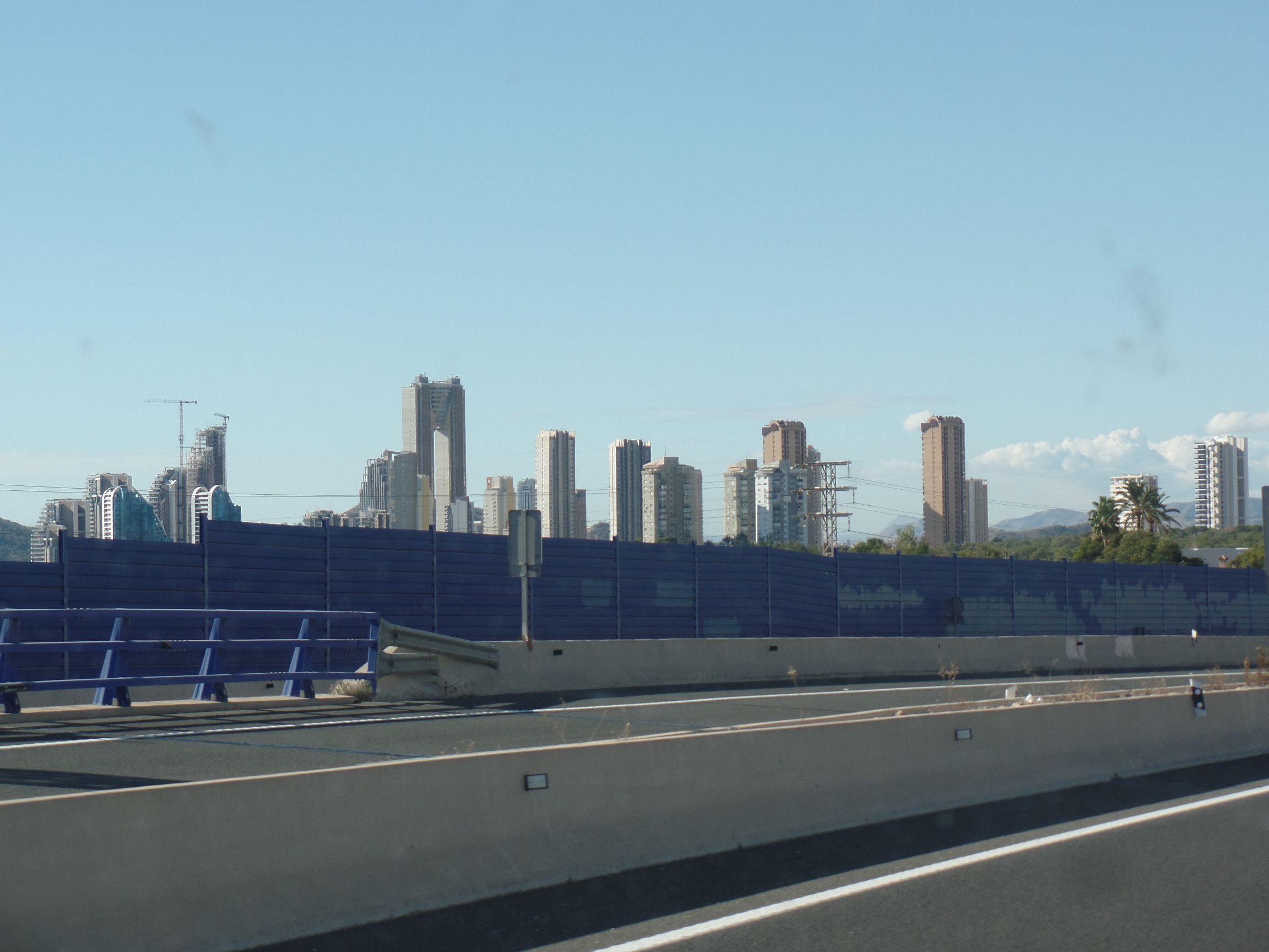 Auf dem Weg dorthin führt die Straße durch eine felsige Landschaft und an Benidorm vorbei. Die Stadt ist an einem besonderen Hochhaus erkennbar, welches wir schon vor neun Jahren sahen. Überhaupt zeichnen sich die Städte an der Costa Blanca durch sehr viele Hochhäuser aus.